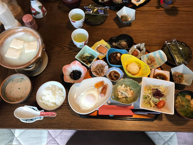 ご飯は夕食、朝食ともに新鮮な野菜、魚、お肉とバランスよく品数もたっぷりで、子どもたちと一緒に分けて食べましたが、腹十二分目くらいの満腹!!
