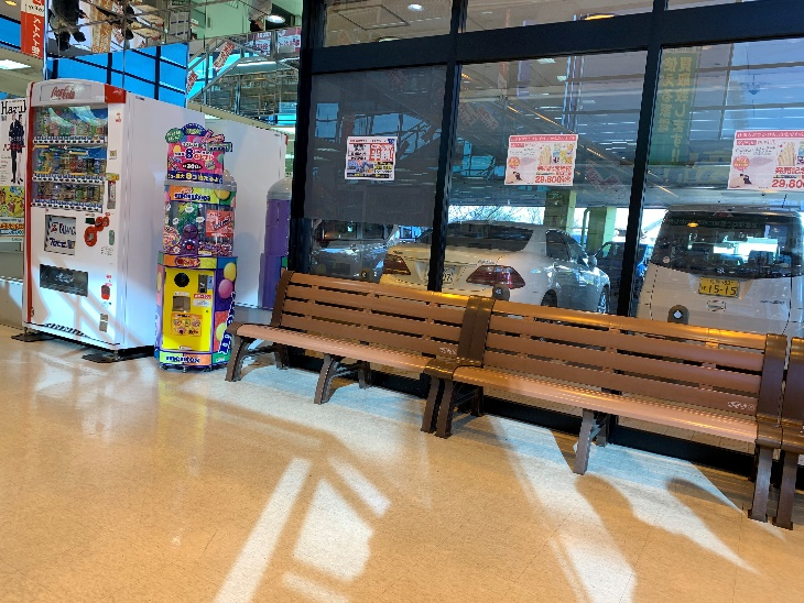 お買い物に少し疲れたという方も安心、休憩スペースもありました。ひと息つきたいときはこちらをご利用ください。