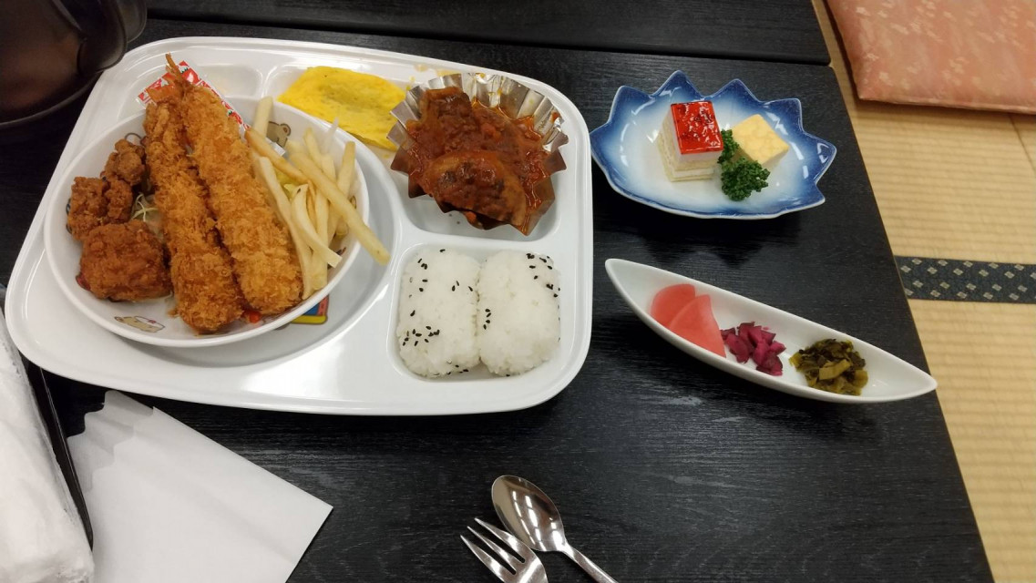 お食事は時間を指定できます。こういう時期だからか、広すぎるくらいのお部屋で、きちんと個室にされており、家族だけで安心して食事ができます。七歳と四歳の娘には、年齢を伝えてお食事を用意していただきましたが、内容がこちら。