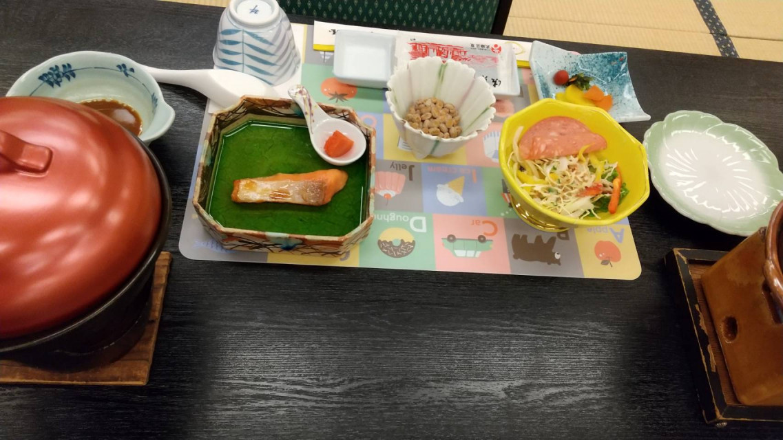 コロナ禍という時期もあってか、夕食も朝食もゆったりとした空間でいただくことができ、周りの目が気になることもありませんでした。次の日の朝食も、こどもたちそれぞれに、かわいい食器なども用意されていましたし、持ち帰りのコーヒーまでいただくことができました。旅館の方も皆さん優しく、こどもたちにいろいろ話しかけてくださいました。