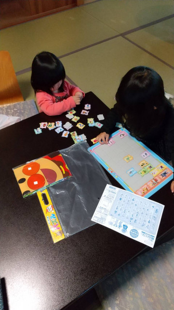 時期によると思いますが、この日はこども連れにはもれなくアンパンマンのパズルとレジャーシートをいただきました。これは嬉しい部屋につくなり、姉妹で何回もやっていました。