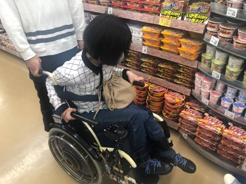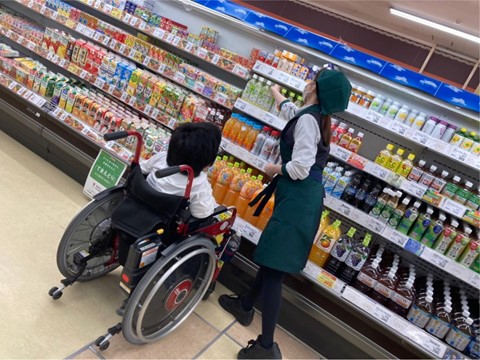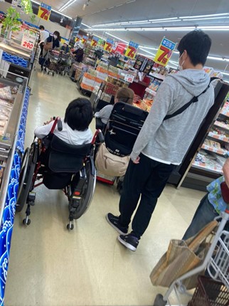 こちらのAコープは全体的に見てみると、商品陳列の高さが車椅子の高さからでも見やすくなっています。この日はポイント7倍デーだったので、お客さんが通常よりも多かったのですが、店員さんが障害物をずらして車椅子が通りやすい環境を作っていただいたり、お客さんが譲り合って通りやすいように車椅子ユーザーに気を遣っていただいたりと、優しく暖かい心配りに触れることができました。