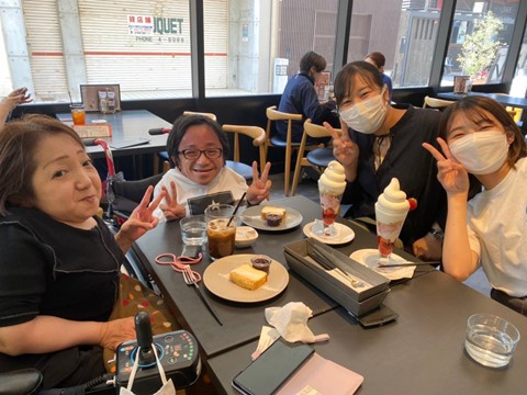 ソフトクリームのオブジェクトを動かして通りやすくしていただいたり、店員さんやお客さんに出入口のドアを開閉していただいたり配慮していただき、入店しやすかったです。