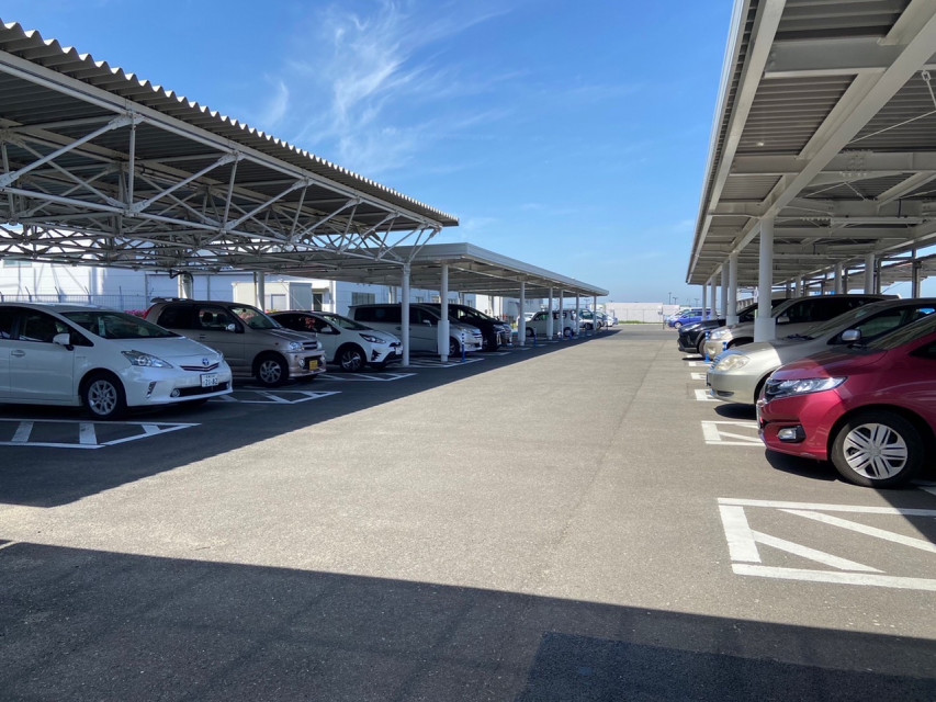 この駐車スペースには屋根が設置されており、駐車スペースからターミナルビルまでの動線にも屋根が付いていたので、雨の日も安心して利用することが出来て良いなと思いました。