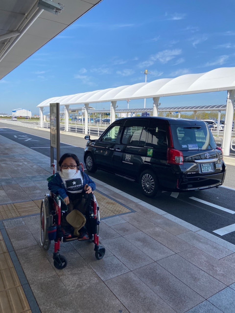 空港の入り口にはタクシー乗り場があり、ちょうどジャパンタクシーがお客様待ちの状態で止まっていました。
