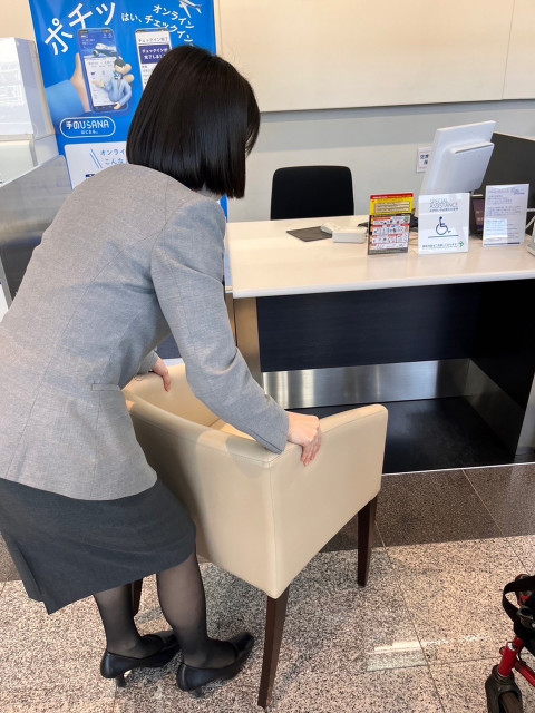 立ったまま応対するハイカウンターのなかにお手伝いが必要な方を応対するSpeciala Assistanceという低いカウンターがあり、そこで応対していただきました。