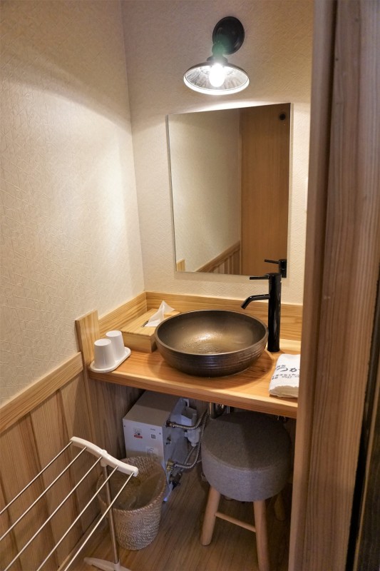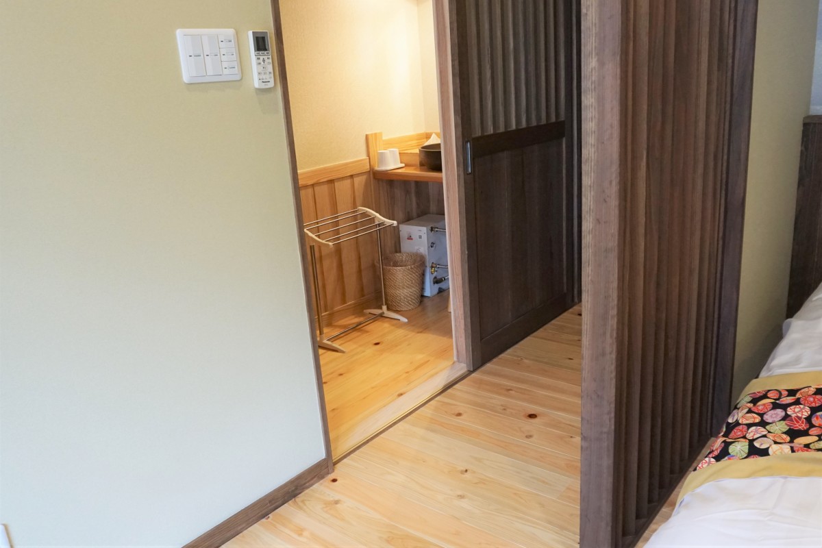 2階和室の客室内のトイレは1段下がる段差あり、手すりつきです。