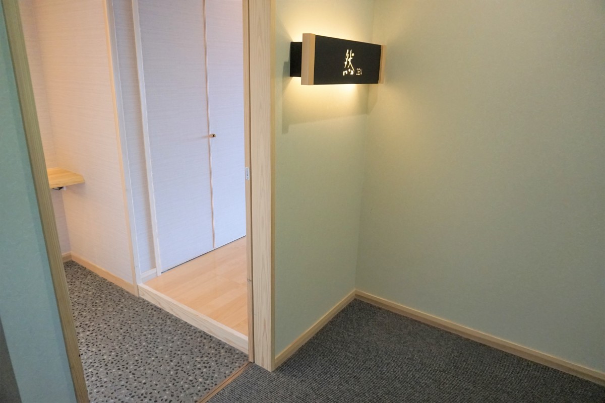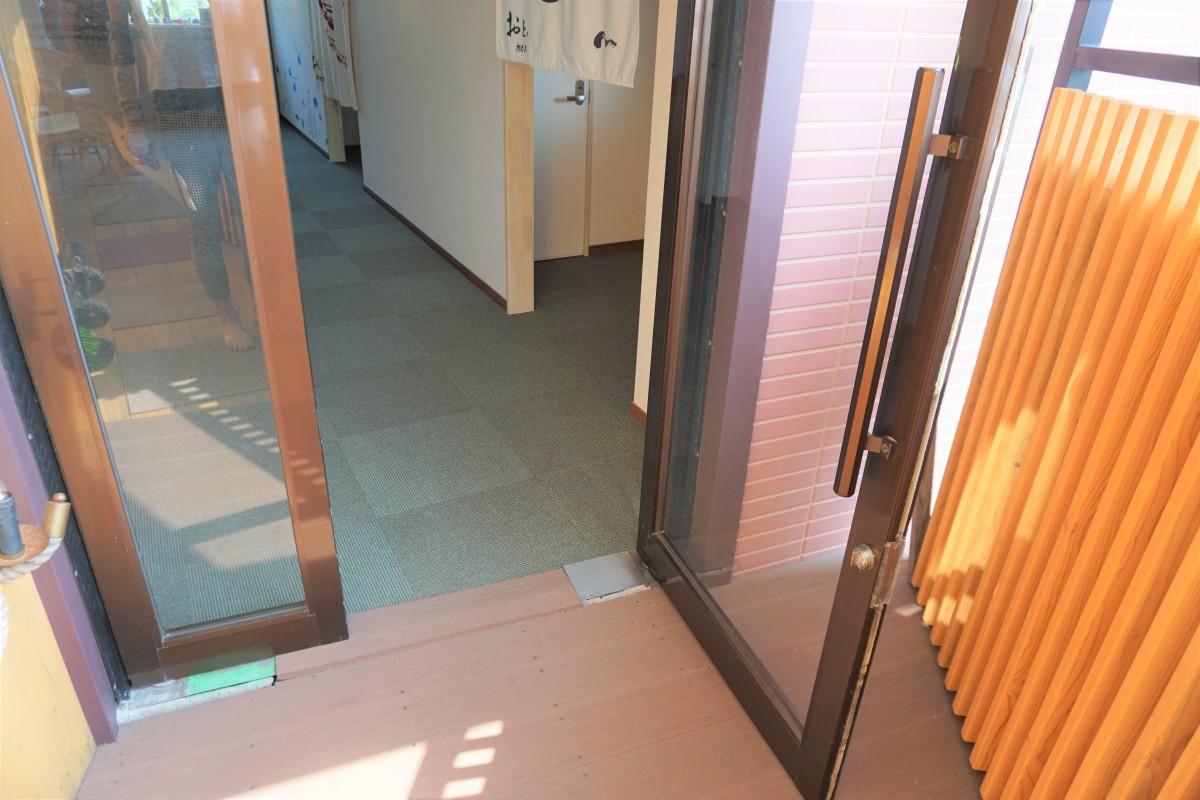 出入り口ドアは、開き戸があり、その奥に自動ドア