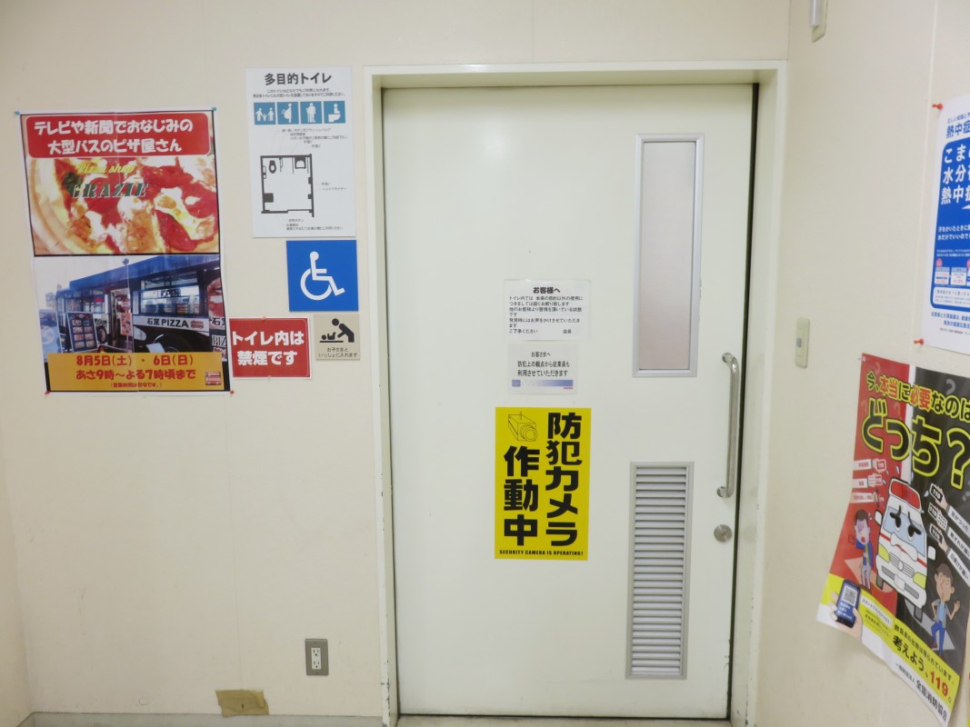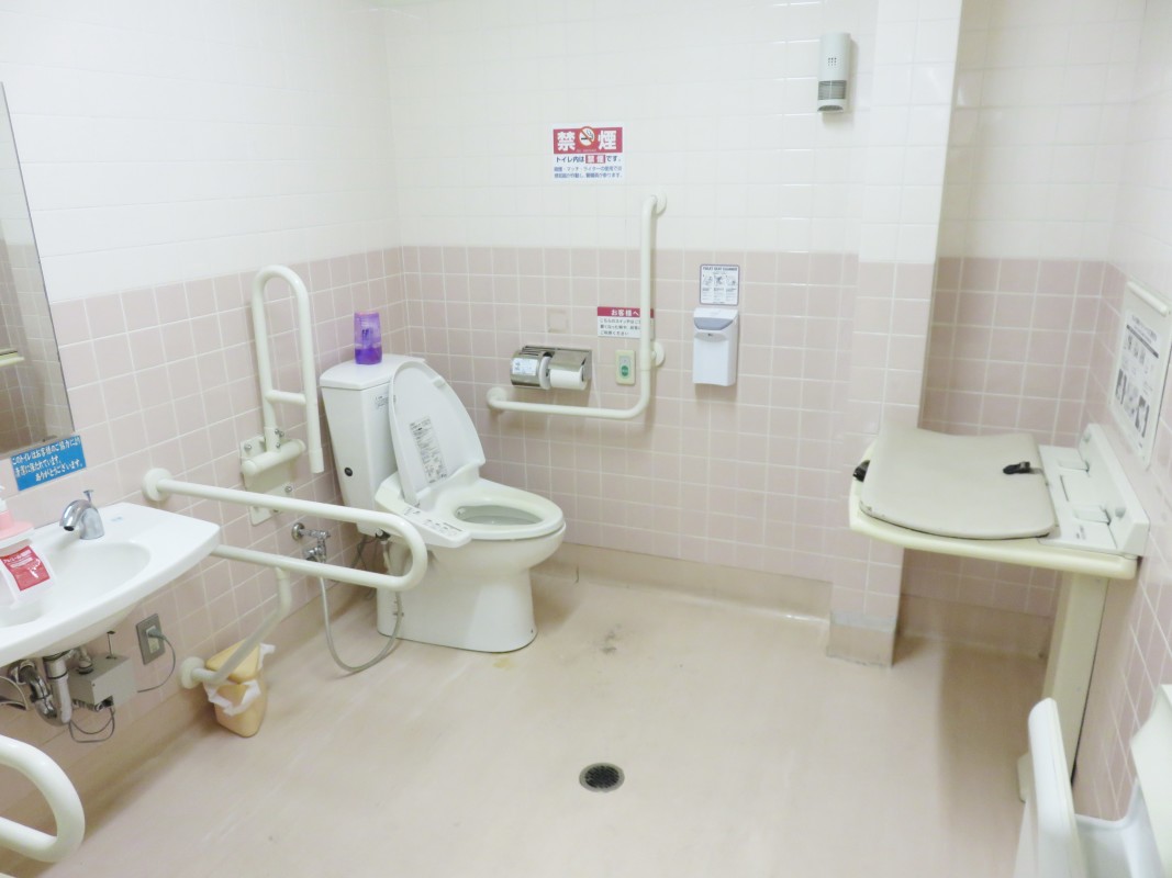 車いす対応トイレ・おむつ交換台あります。