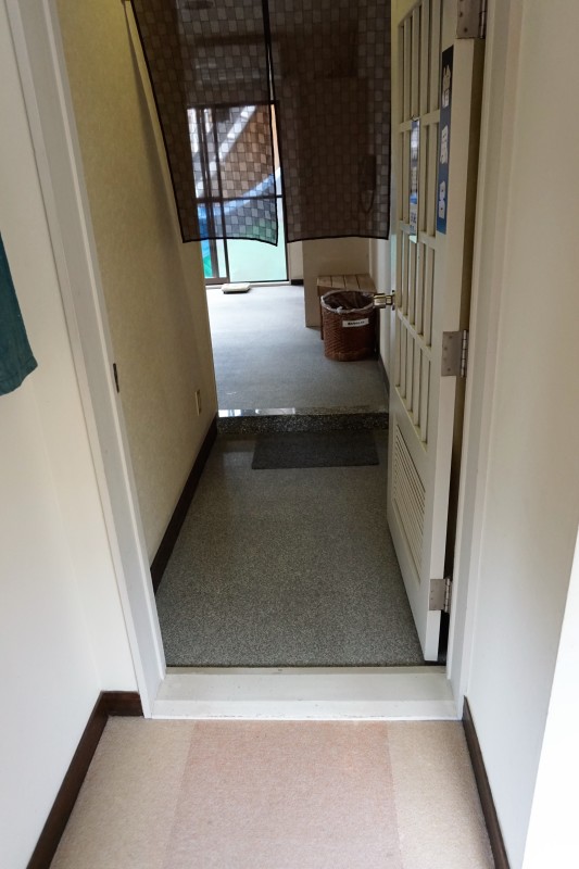 正面入り口の左手にある中玄関からは、簡易スロープ対応可能なため、段差なく館内に入れます