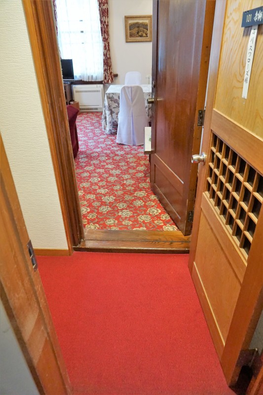 ロビーへ行く際に段差2段(簡易スロープ対応可能)