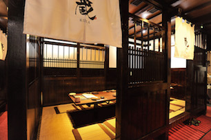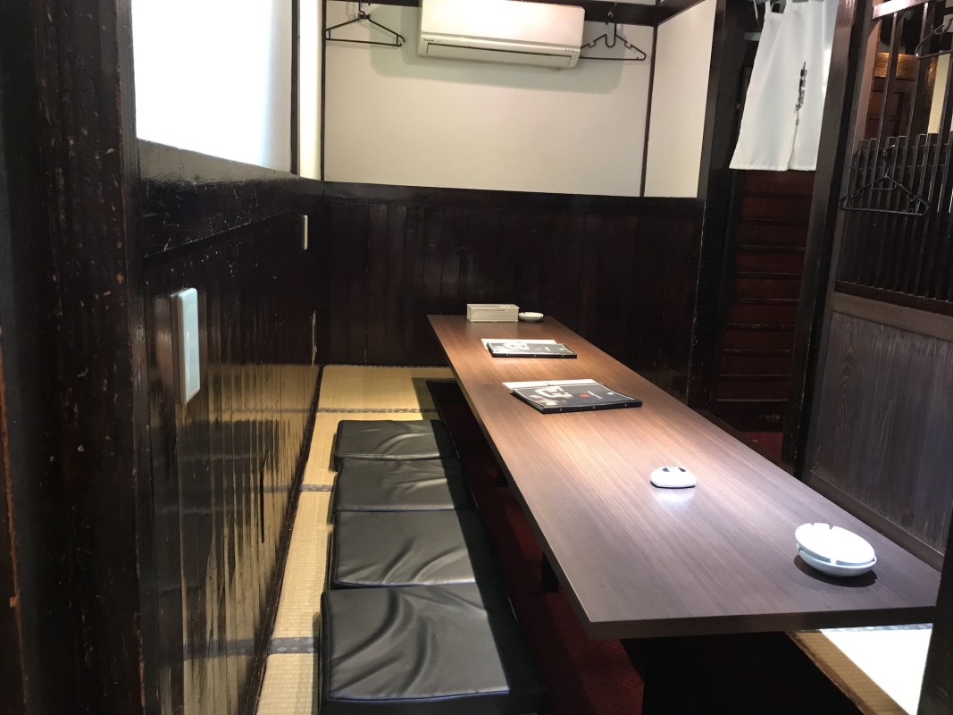 カウンター席から、4〜8名のテーブル席、座敷を含め約150席あり、愛敬通りの白い大きい提灯が目印です。