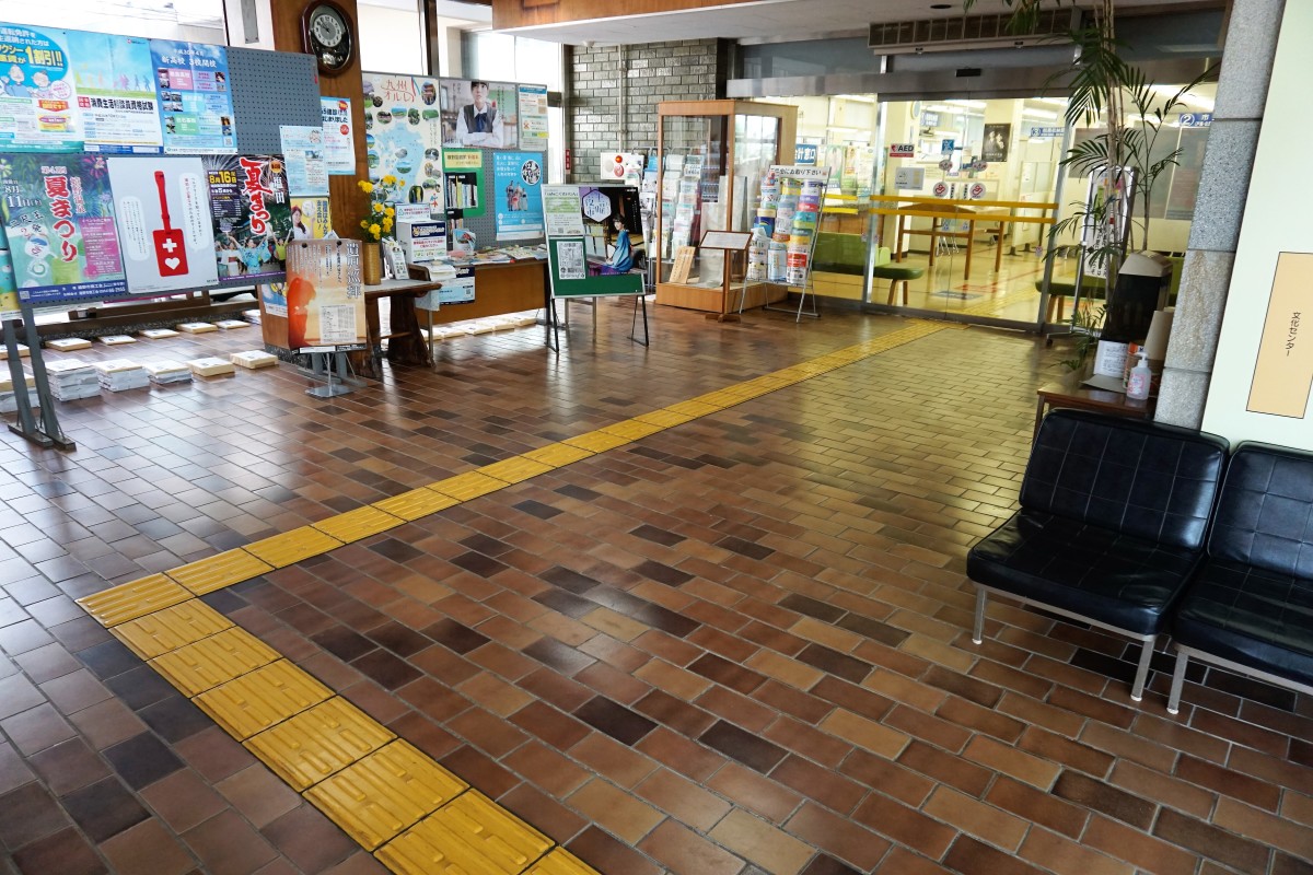 目に見える”物”のバリア、目に見えない”心”のバリアをなくし、互いに支えあえるまちを目指しています。市役所には、コミュニケーション支援ボード「指さす会話板」や、ユニバーサルデザイン製品の待合いす、ベビーベッドなどを設置し、みなさまが過ごしやすいやような準備をしています。