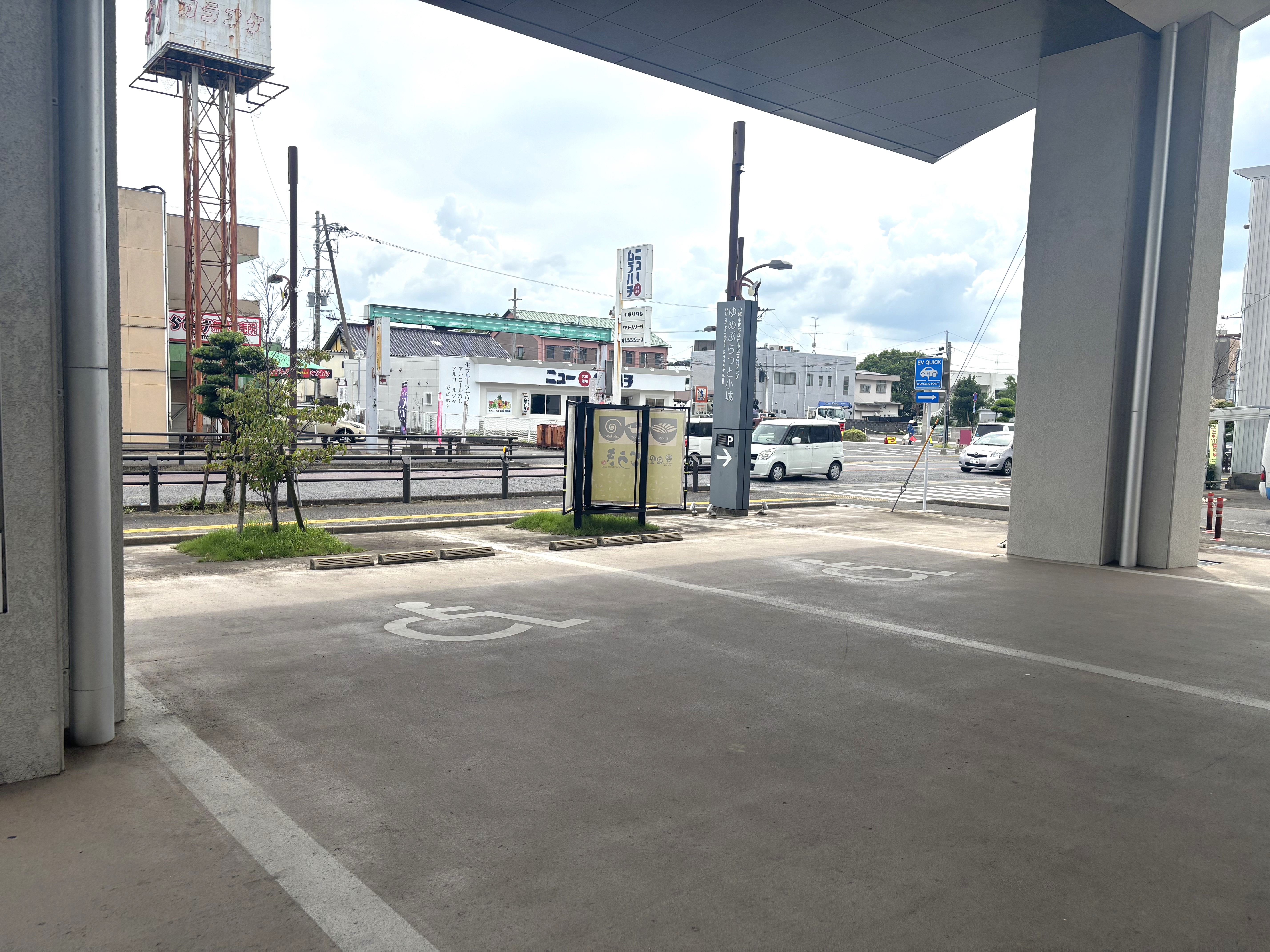 南側身障者用駐車場は屋根がついているので、雨の日でも濡れずに乗降できます。