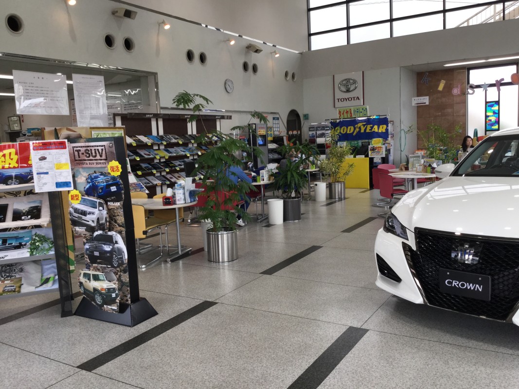 トヨタ車・中古車の販売、自動車の整備・修理、損害保険代理店業務を行っている店舗です。