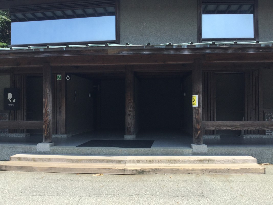 トイレの入り口はスロープになっており、車いす対応トイレ・おむつ交換台あります。
