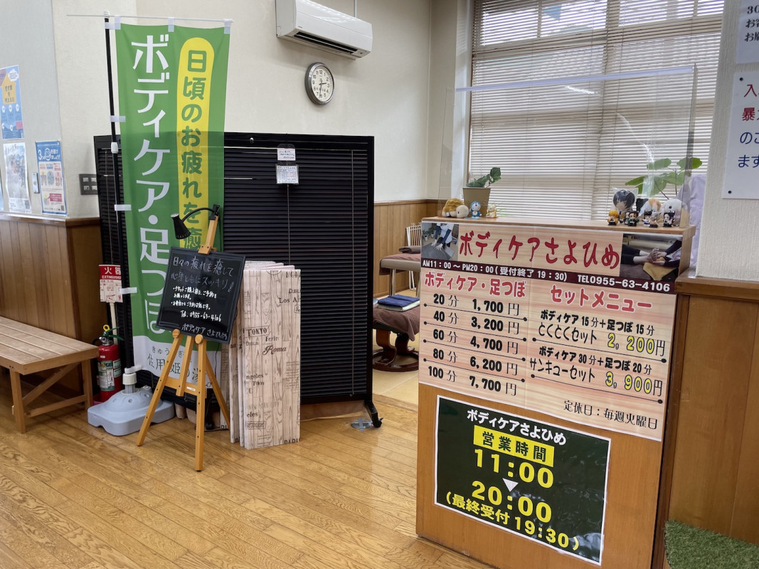 佐賀方面行きバス乗車「厳木温泉佐用姫の湯」バス停下車(当館前)