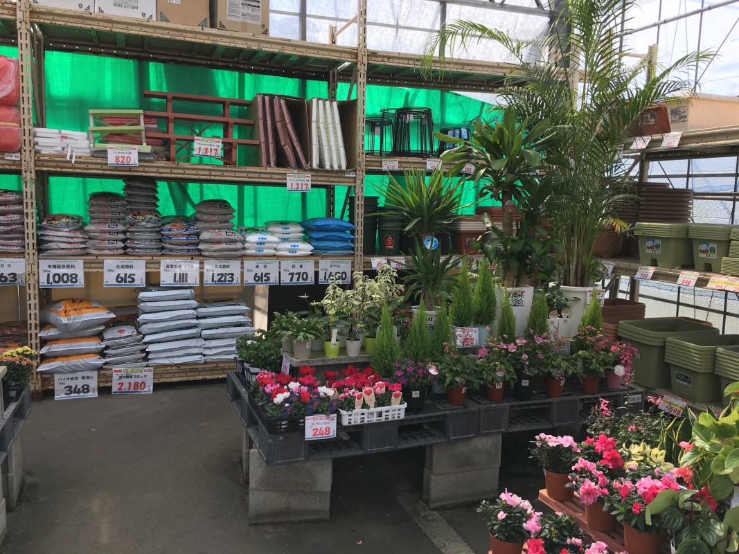 平屋建てで、外売り場には花から用土など取り扱っております。