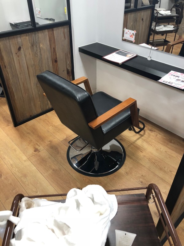 車イスの方が来店の際は、カット台のイスを動かして、車イスのままカットできるようにしています。