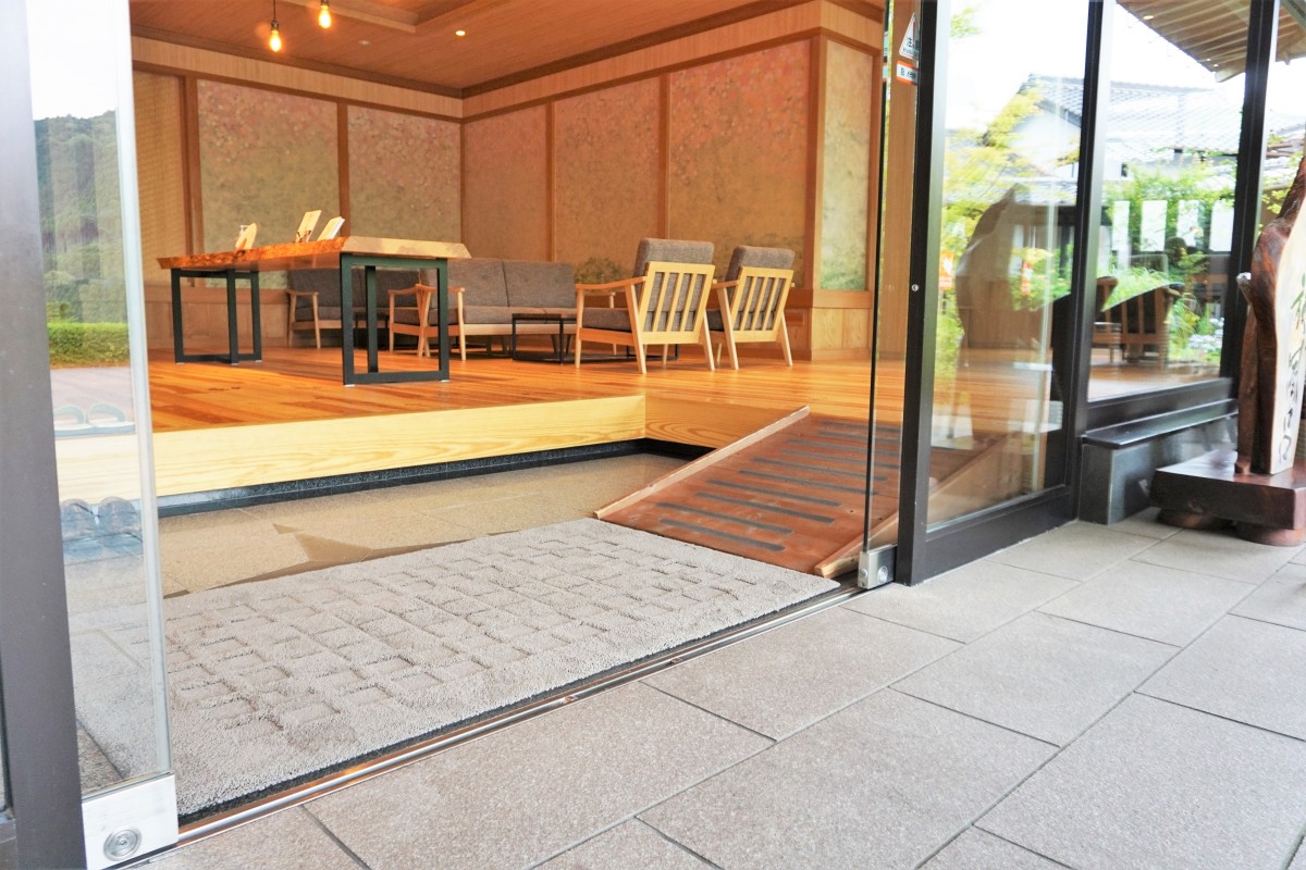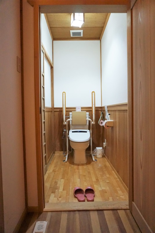 離れはユニバーサルデザイン客室ではございませんが、入り口とトイレに段差がある以外はフラットなつくりです。