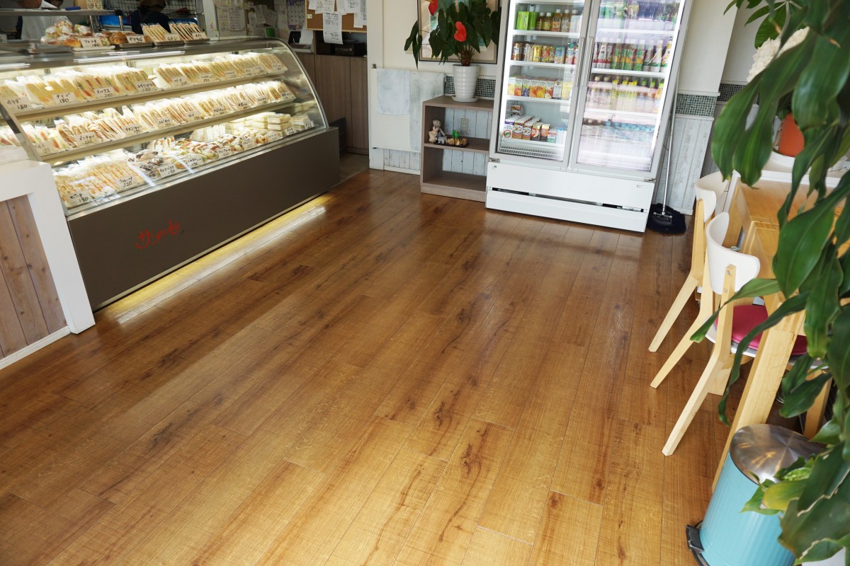 駐車場から店舗内まではフラットな造りになっていて入店しやすく、サンドウィッチの並ぶショーケースも見やすい高さで、選びやすいです。
