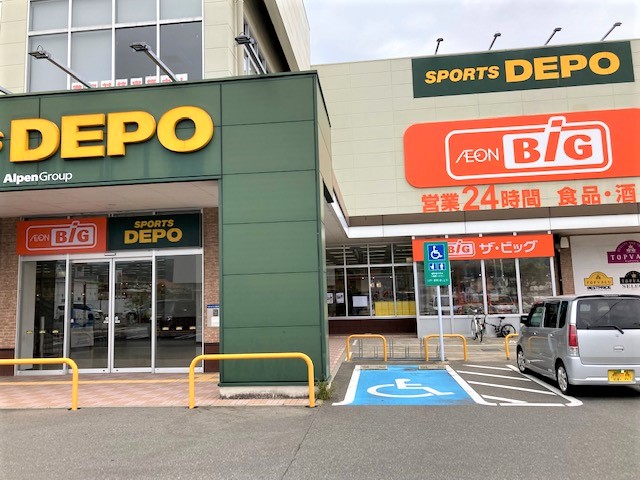 1階にザ・ビッグ唐津店、2階にスポーツデポが入居する建物で、敷地内には、洋服のフタタが併設しています。
