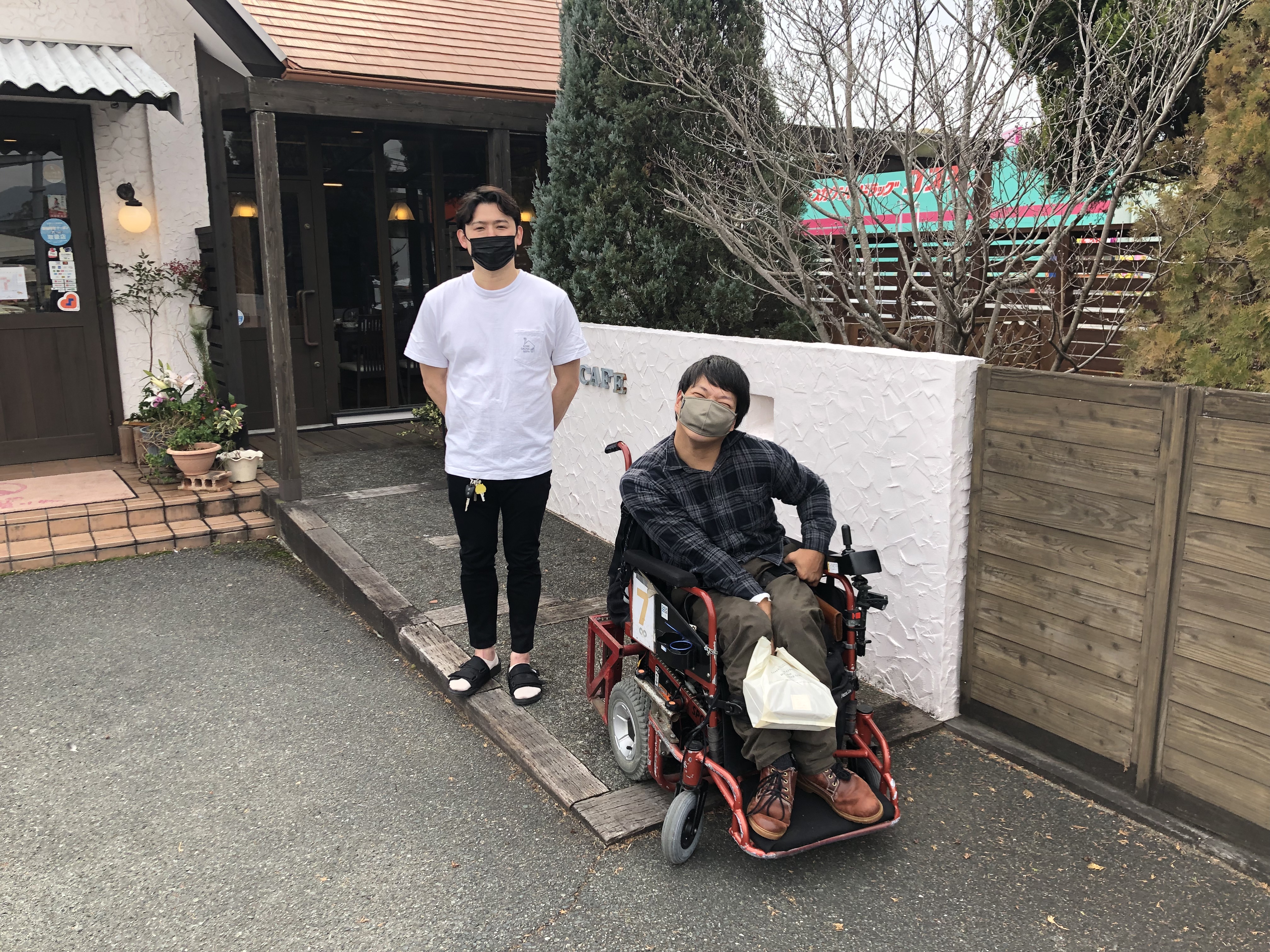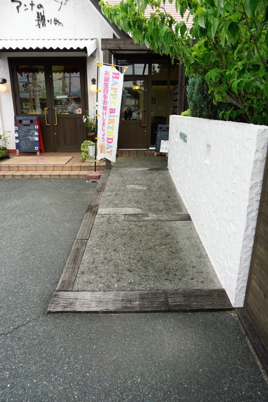 カフェスペースに直接入れる入り口の前にある緩やかなスロープを利用して入店できます。