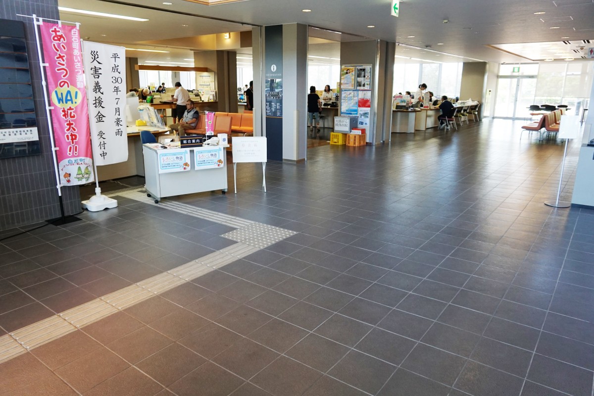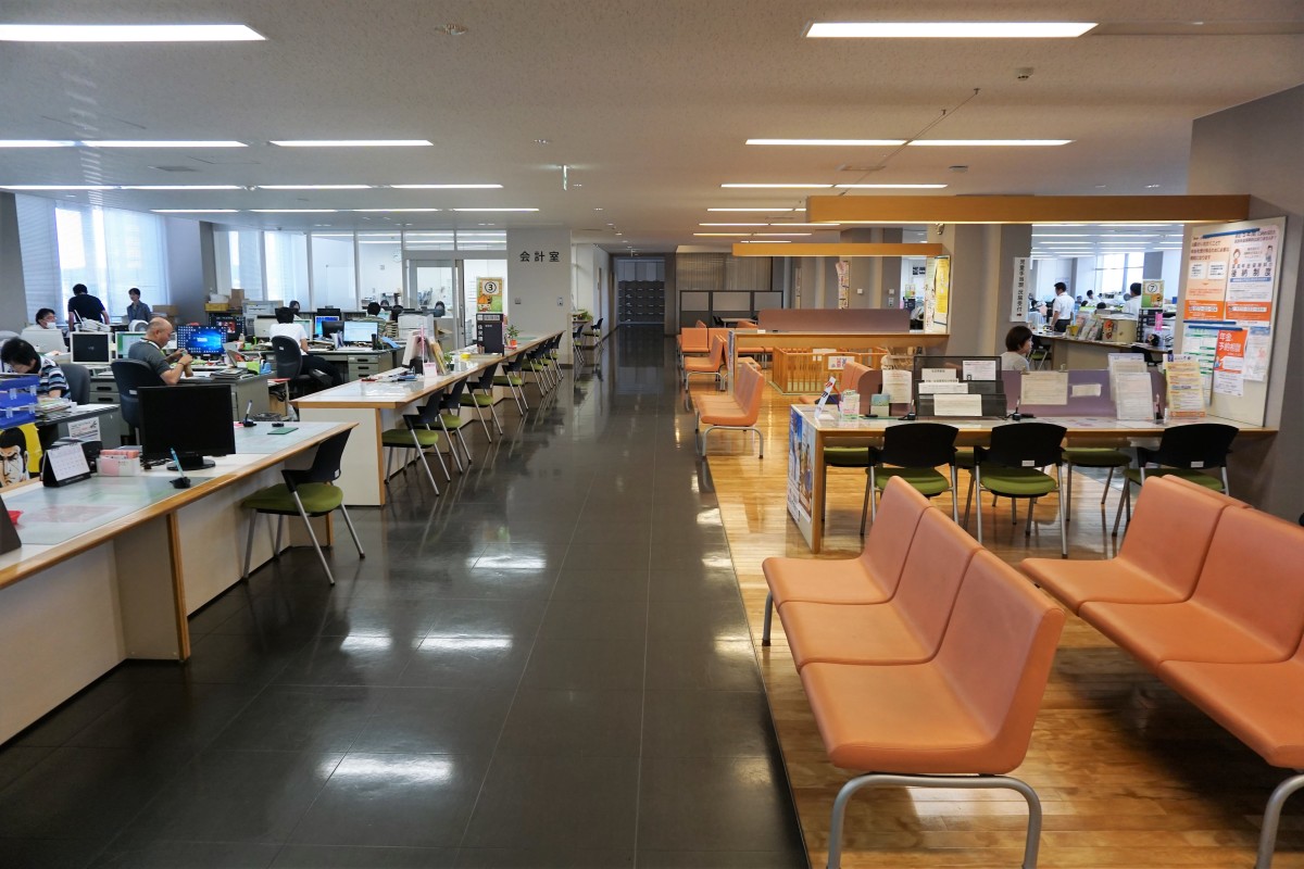 3階建ての庁舎です。1階には広いロビーがあり、庁舎を利用されない方の休憩等も可能です。
