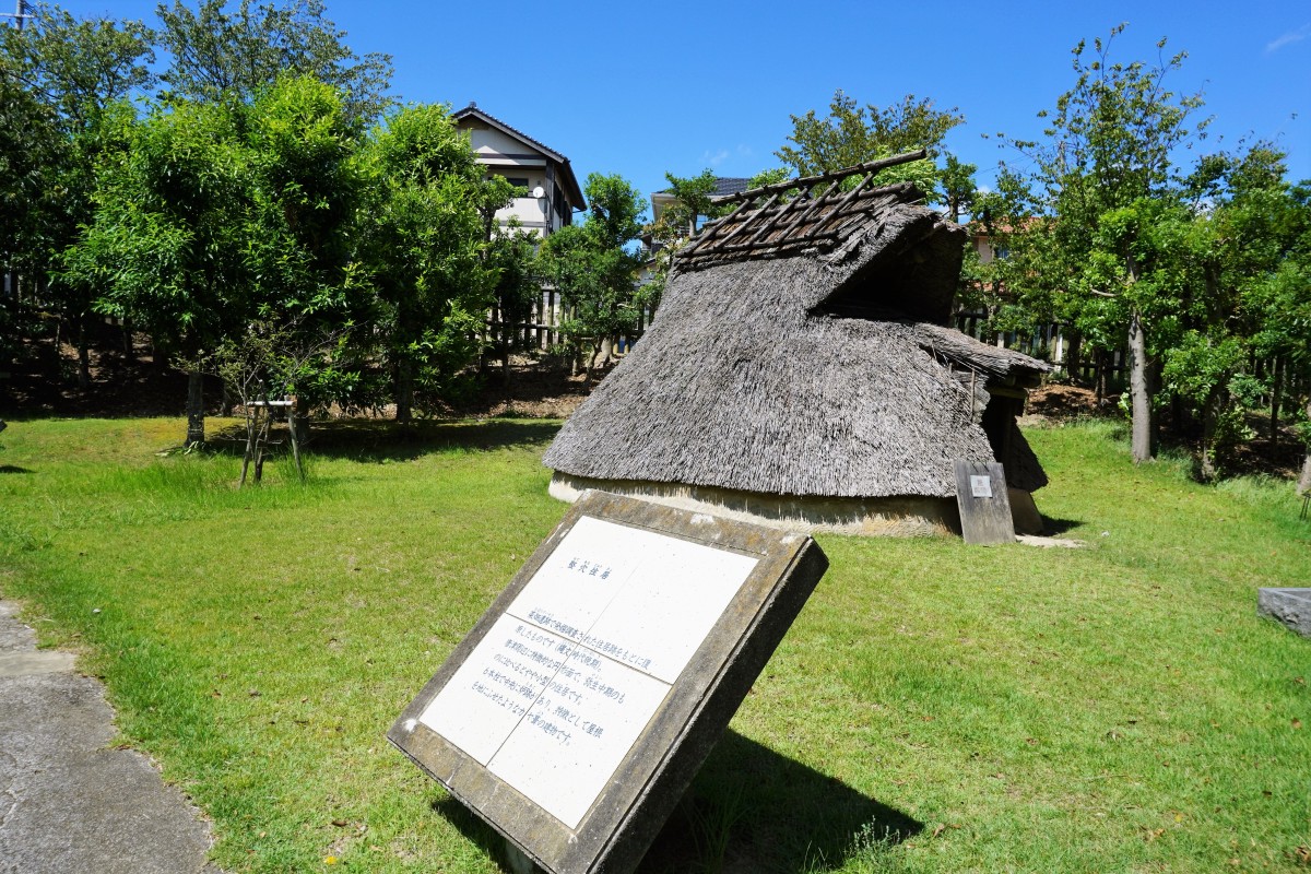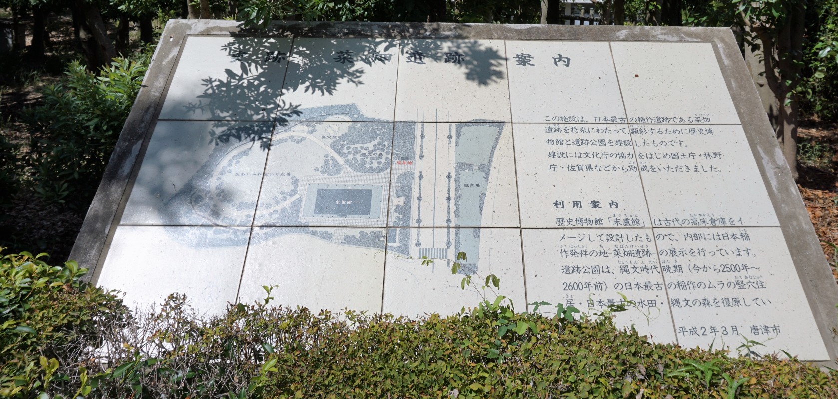 出あいふれあいの広場には、遺跡公園として日本最古の稲作ムラの竪穴式住居、日本最古の水田、縄文の森を復元しています。