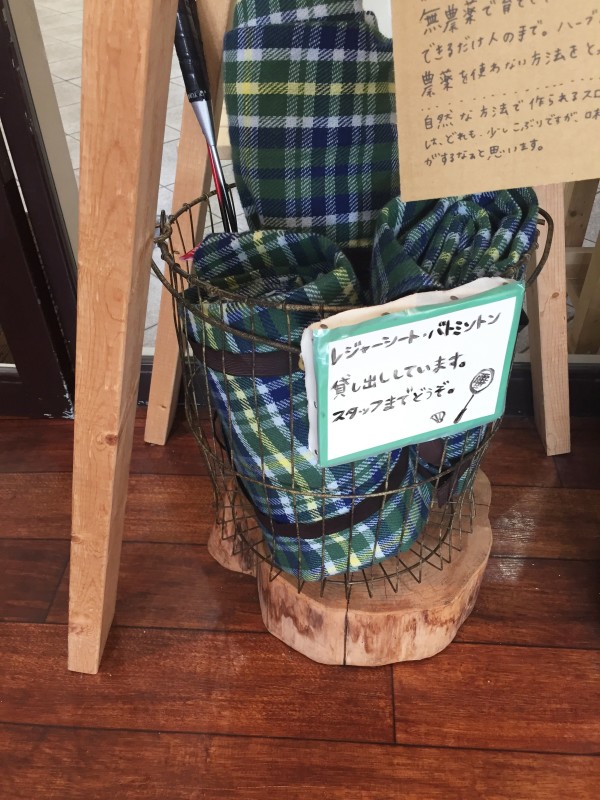 どんどんどんの森の広場で利用できるレジャーシートとバトミントンの貸し出しを行っています。