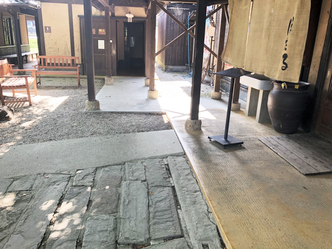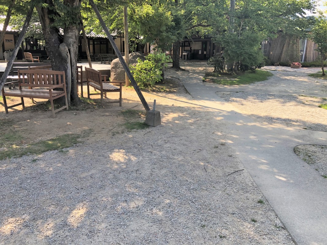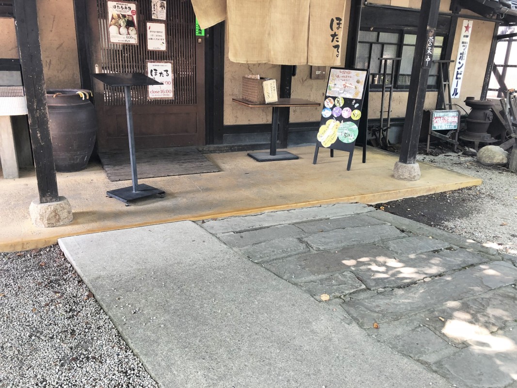 敷地内は砂利や坂があり、1~3段の段差あり