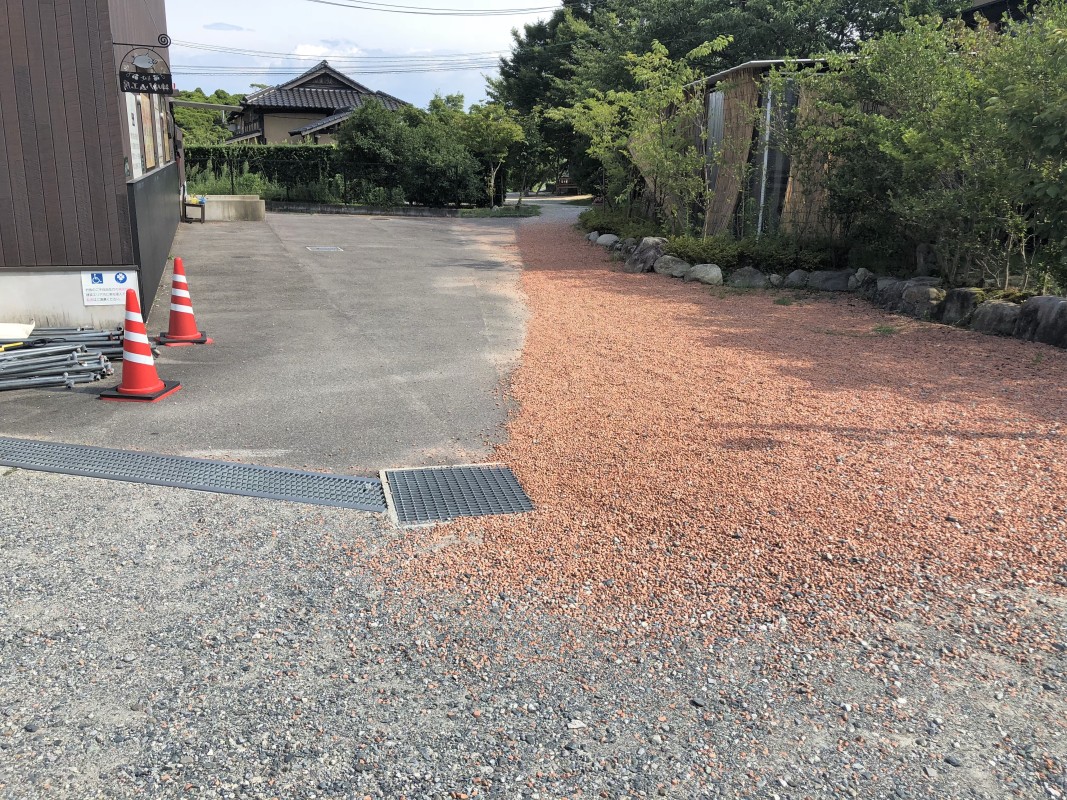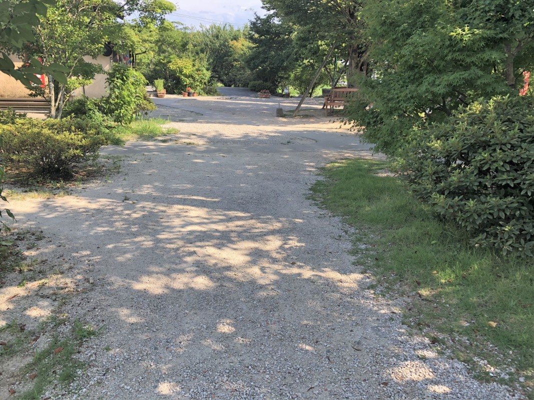 敷地南側に10台ほど、敷地北側に観光バスも停めることのできる砂利の広い駐車場あり