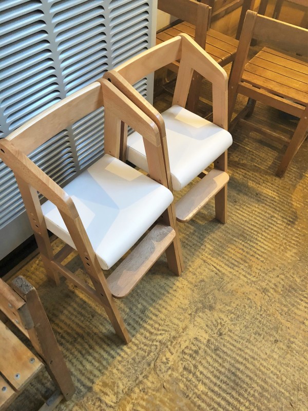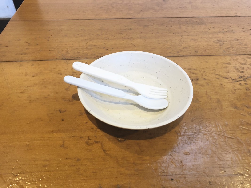 お子さま用スプーンとフォーク、いす、あり