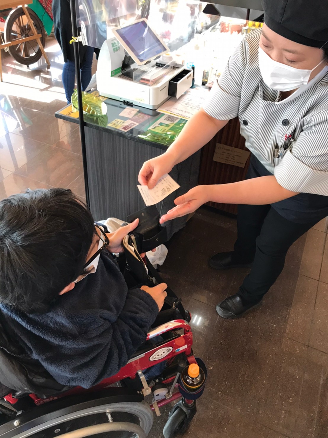2017.11月にカフェ併設でお年寄りから赤ちゃんまでゆっくり過ごしていただけるお店へ新しく生まれ変わりました。トイレも広く、ベビーキープやオムツ交換台もあり、車いすの方も身障者駐車場からお庭の中を通るゆるやかなスロープを使って入店できます。