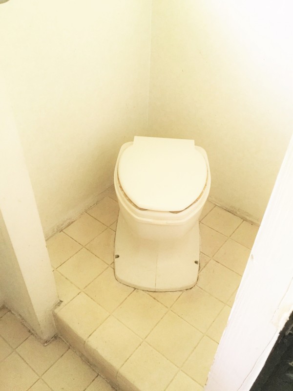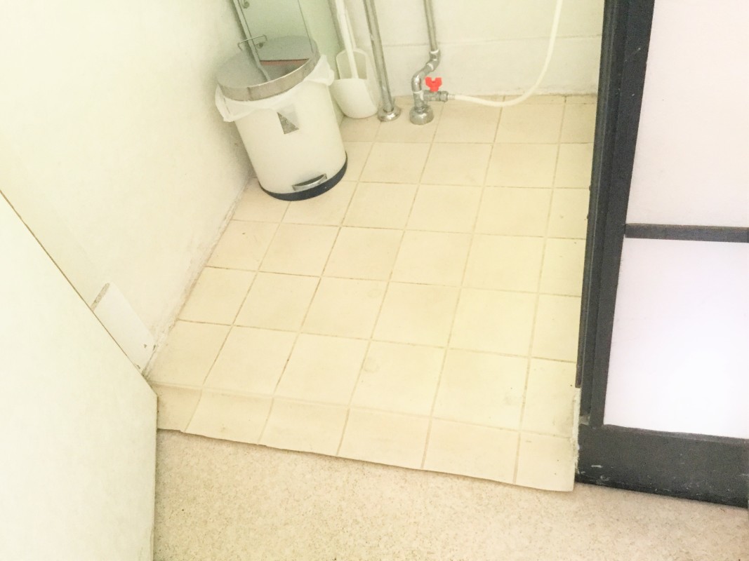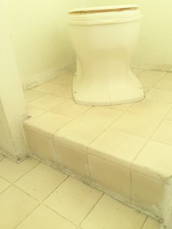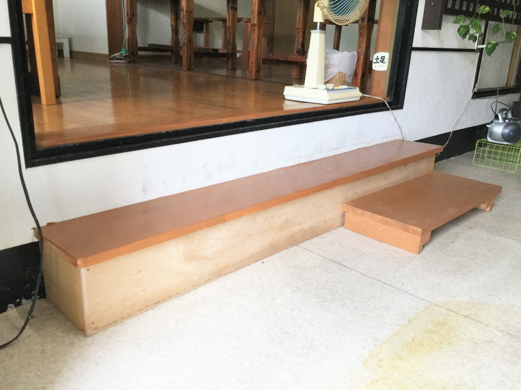 (飲食コーナー)10センチの段差2段、13センチほどの段差が1段、計3段あり