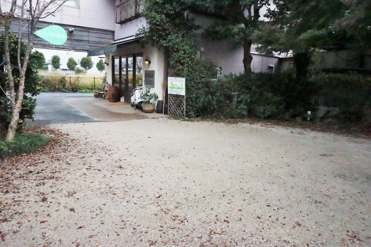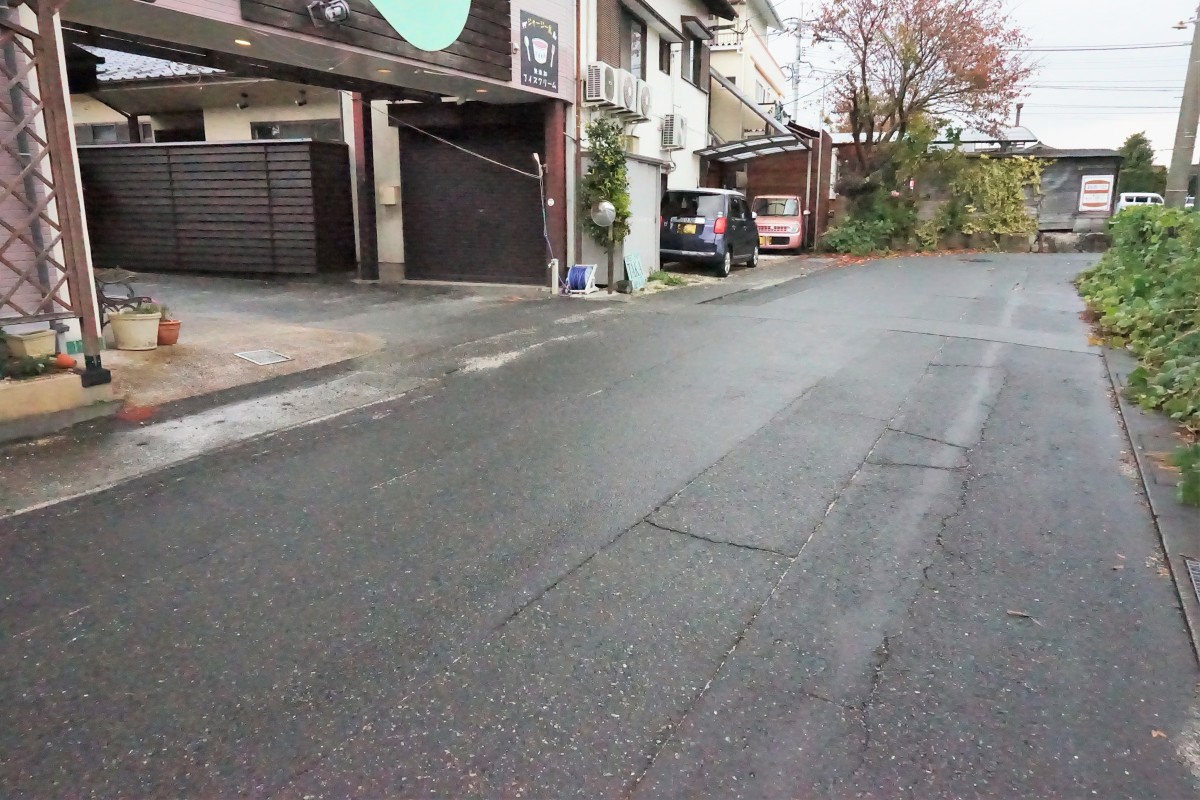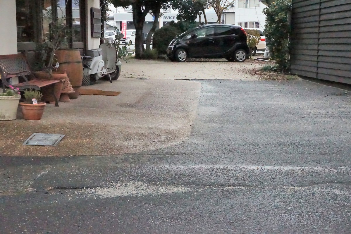 駐車場への出入り口は2箇所あり、バイパス側と店舗裏通りから出入り可能です。