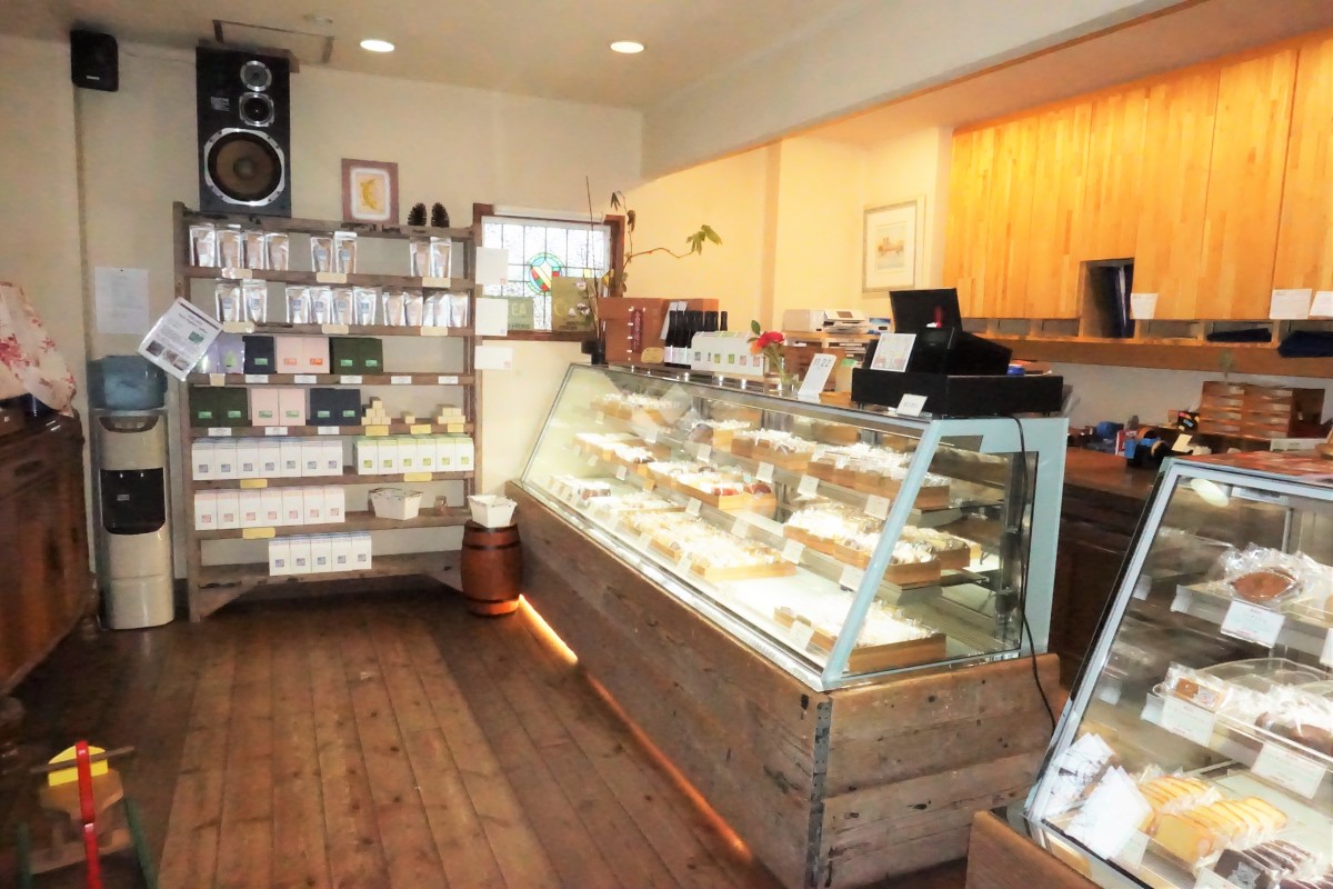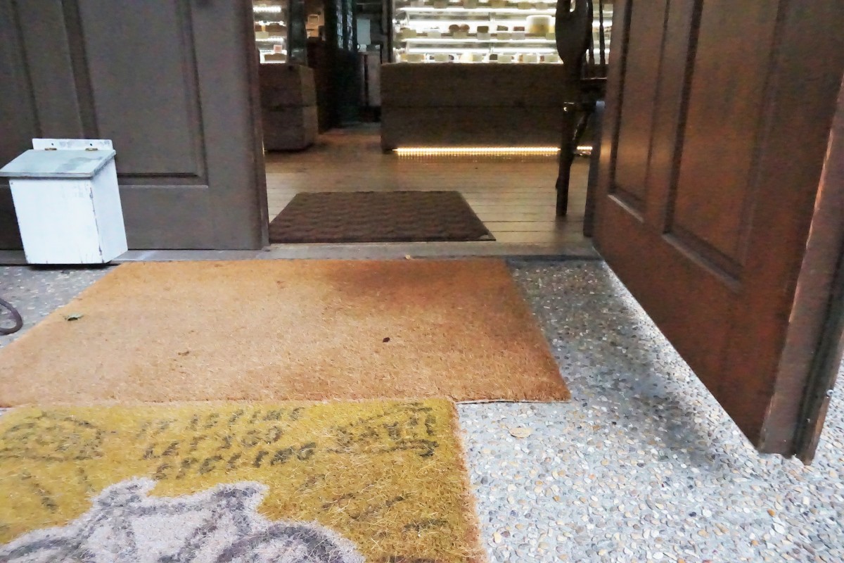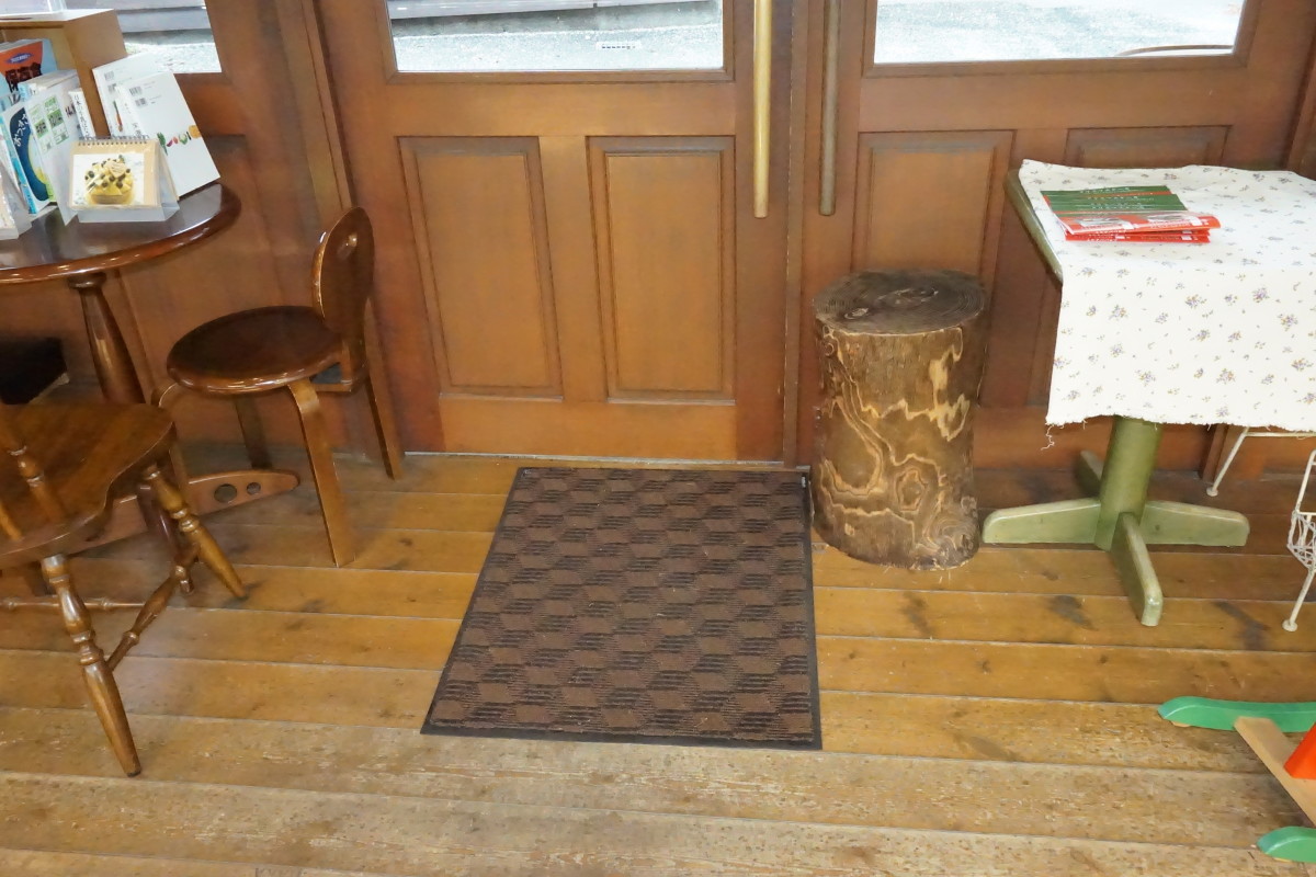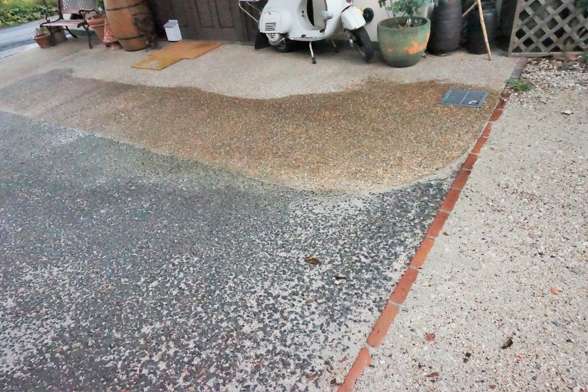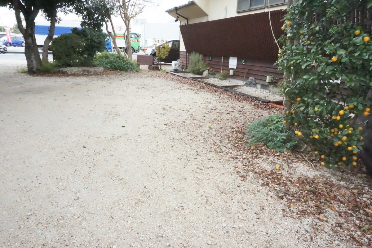 駐車場から店舗前までの敷地内通路にブロックの仕切りあり