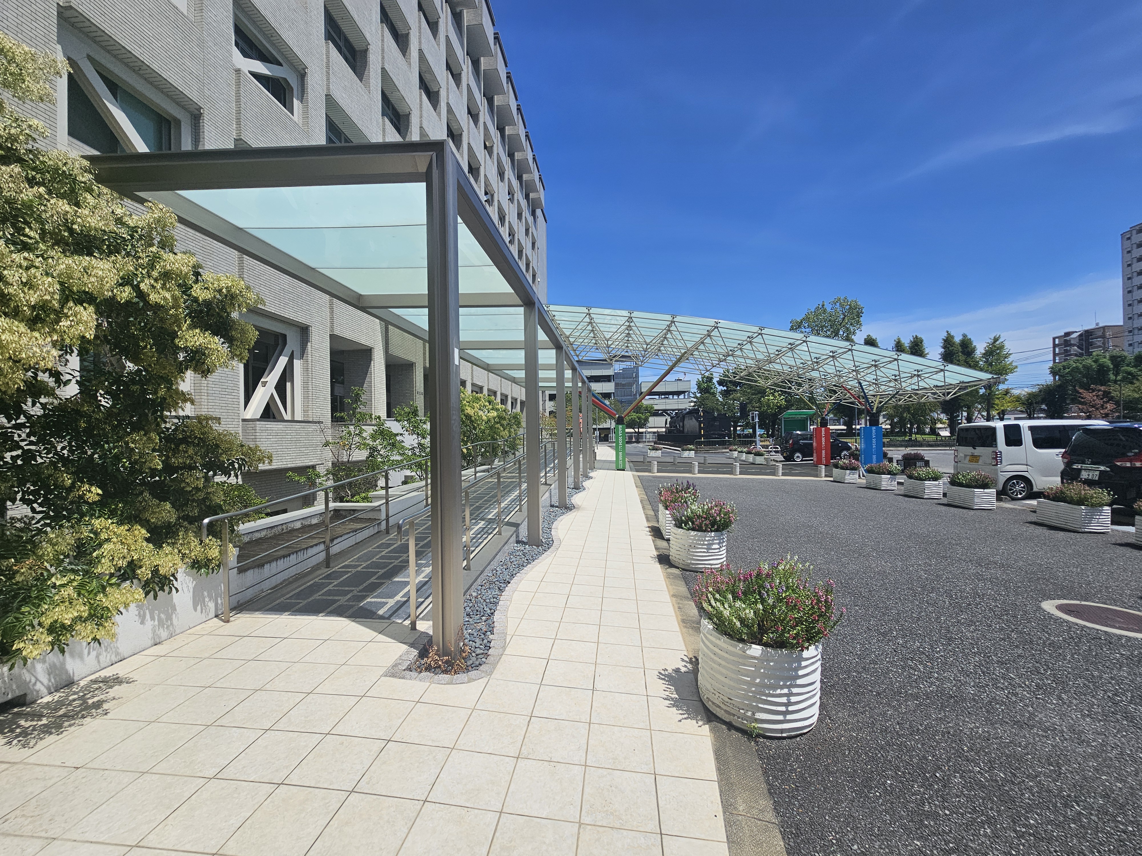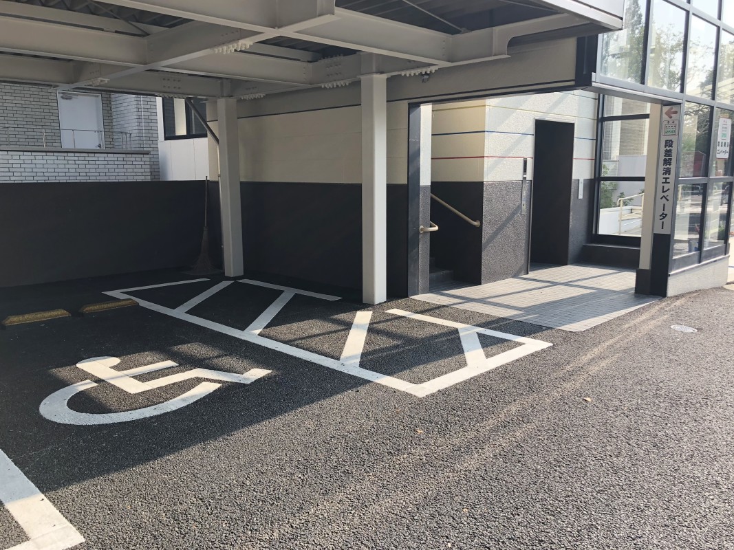 庁舎北側の駐車場には、屋根付の身障者等用駐車場が設置されています。