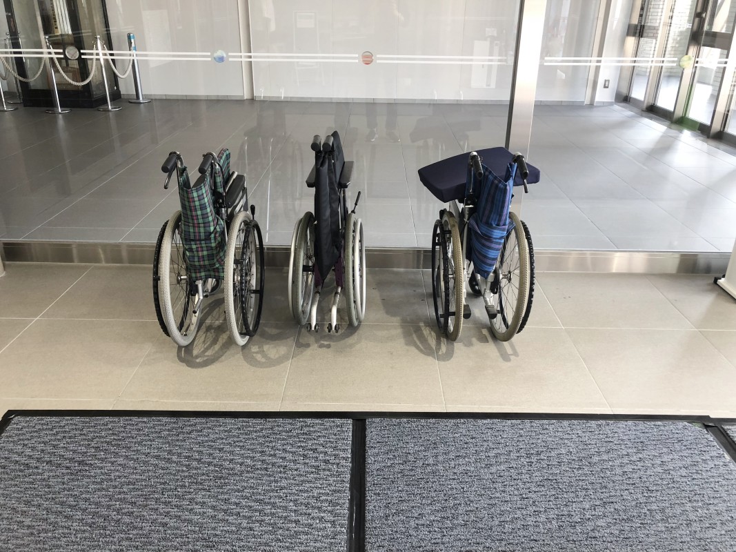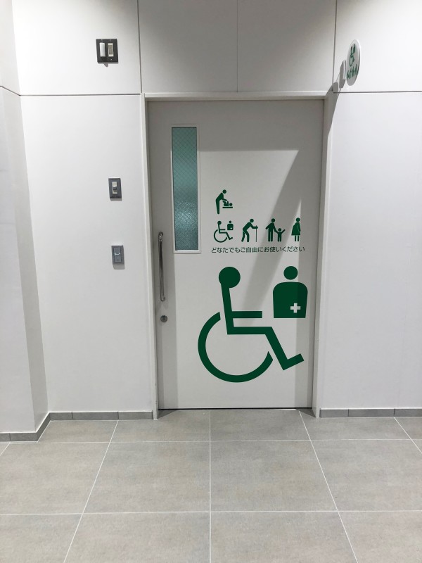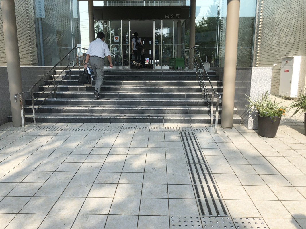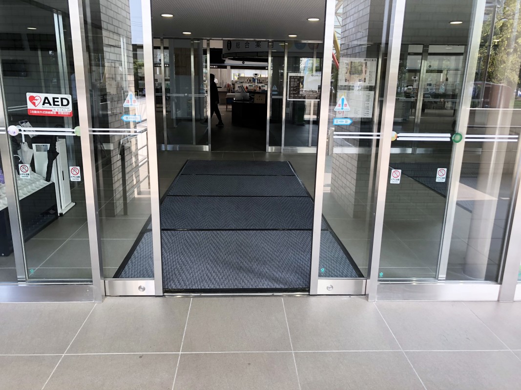 出入口はすべて自動ドア。出入口手前に階段とスロープあり。