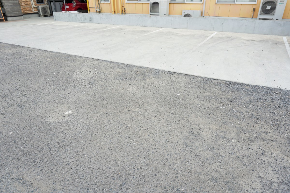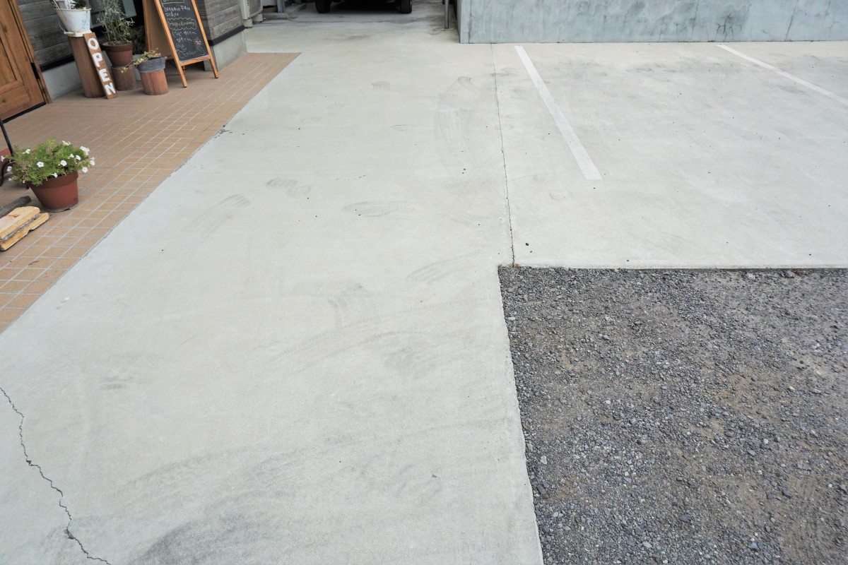 砂利のゾーンからコンクリート舗装された部分に段差あり