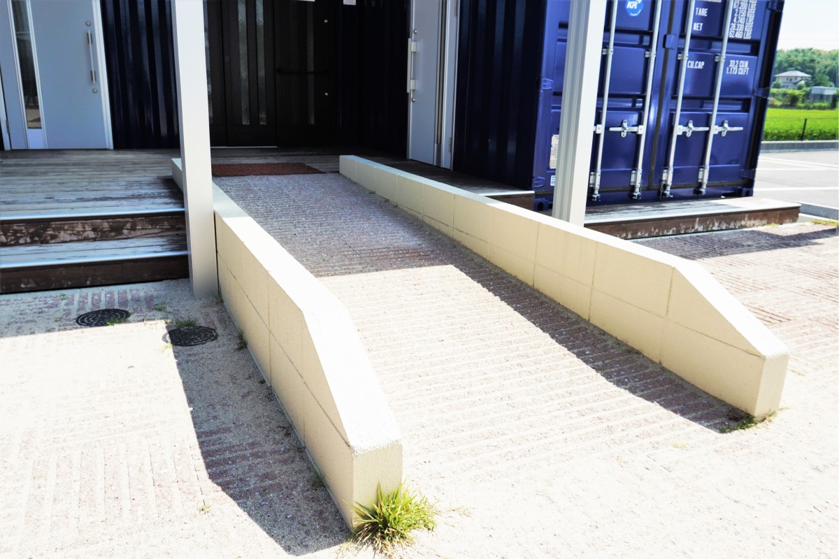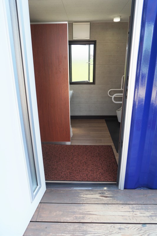 出入り口は建物正面入り口と東側入り口(テラス、トイレ側)の2箇所あり