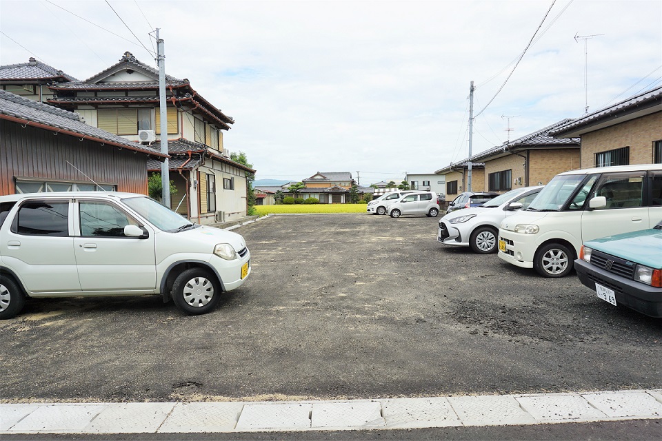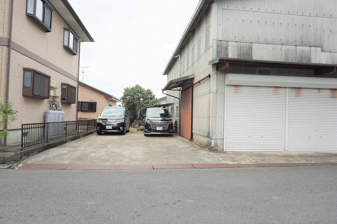 店舗入り口前と、道を挟んで向かい側の倉庫横、さらに店舗裏の空き地にあり