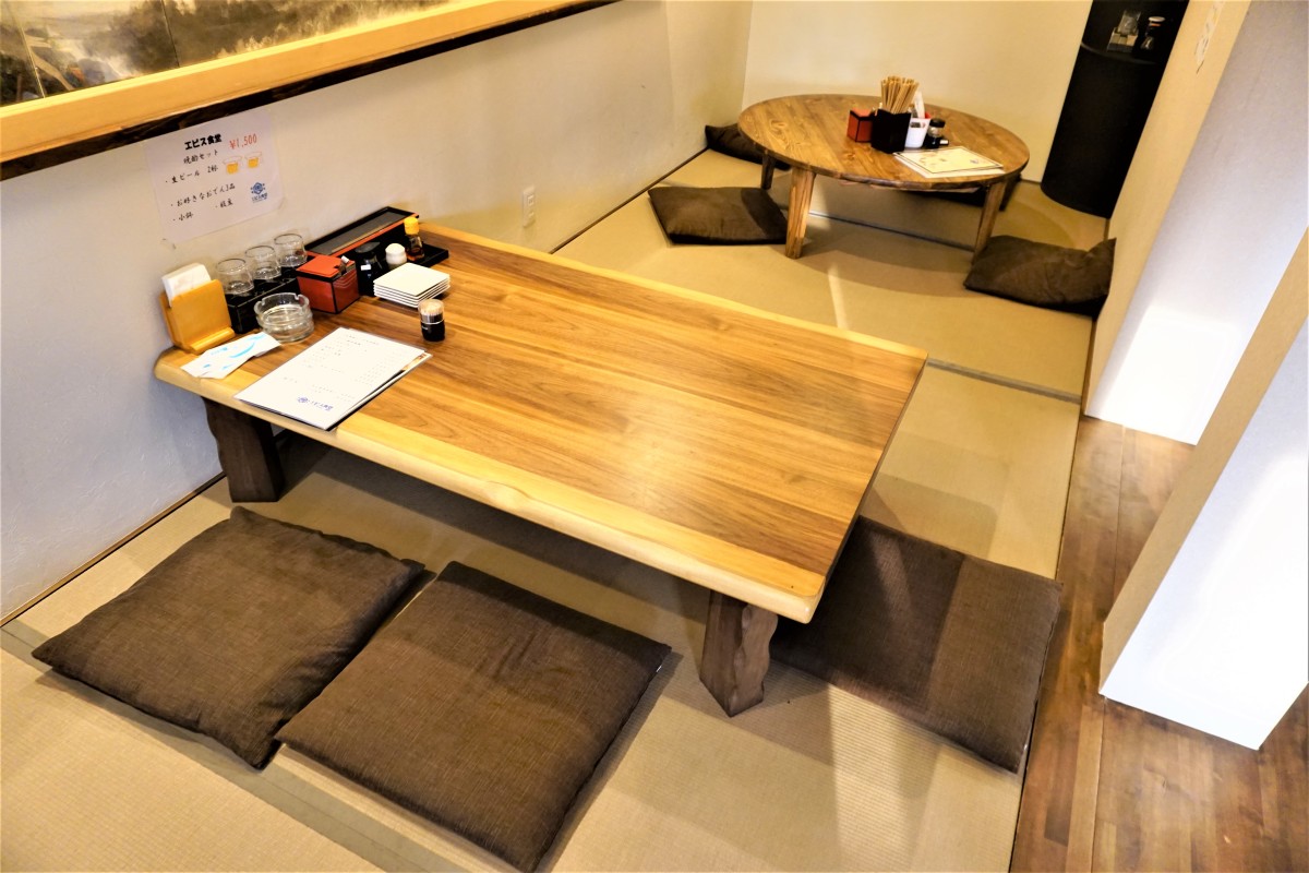 駐車場は佐賀銀行神埼支店方面へ80m程(歩いて1分)の地区共用の広い駐車場がありますのでそちらを利用してください。地区共用駐車場には身障者等用駐車場2台、共用トイレには車いす用トイレもあります。店舗には一般の洋式トイレのみ、入り口から段差がありバリアフリーではありません。お座敷があるのでお子さま連れもゆっくりとお過ごしいただく事ができます。