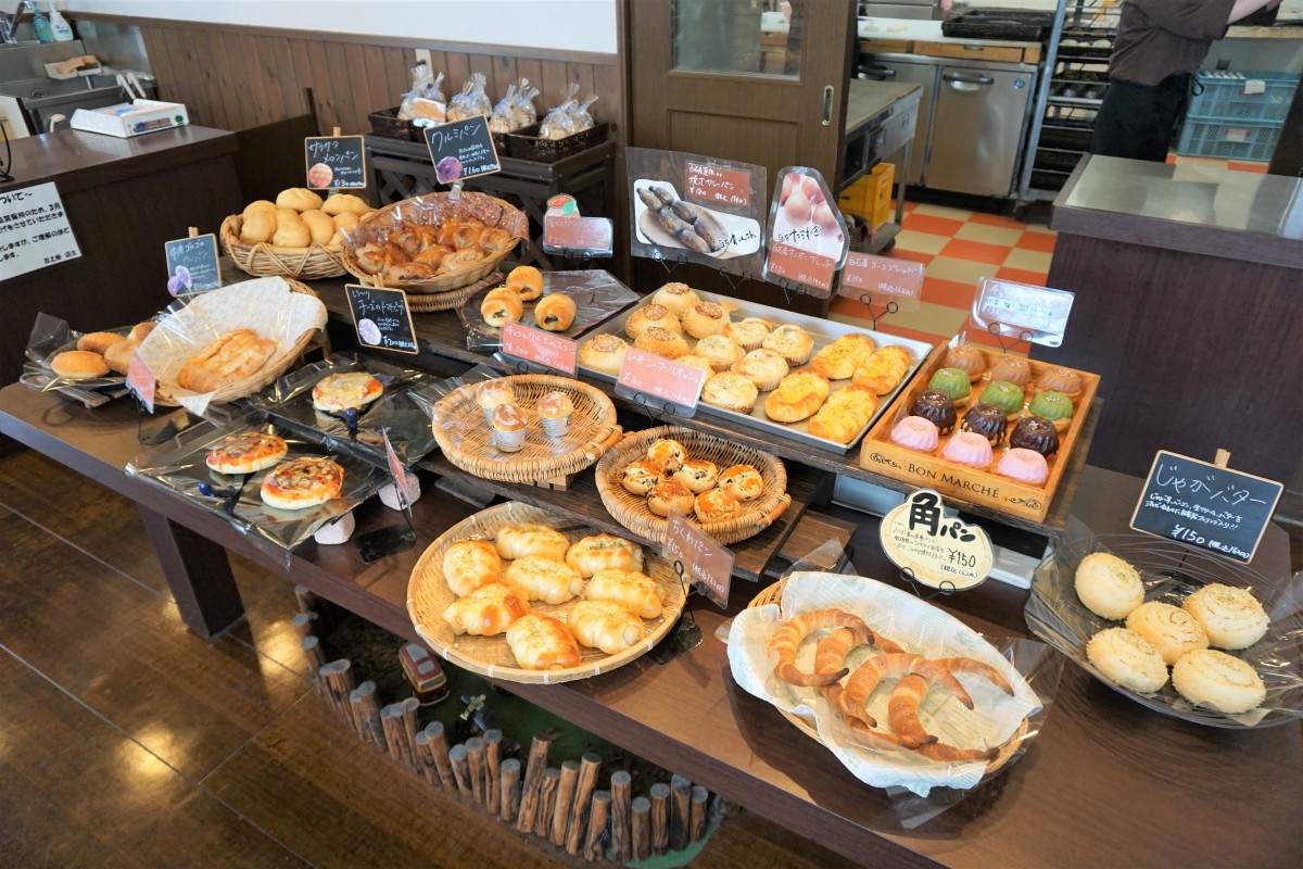 県内の有名店で修行を積み、2012年3月に白石にて開店。地元に愛され、地元の食材を使ったパンもたくさん並ぶ「百之粉」です。人気ナンバー1は「自家製あんぱん」で、一度に20個~30個のご予約される方もいらっしゃるほどです。その他、白石の自慢の食材であるレンコンや玉ねぎを使ったパンもあり、変り種として隠れたファンも多い「ちくわパン」もあります。「道の駅ふくどみ」でも一部販売しています。デザートパンから惣菜パンまでたくさんの種類がございますが、やっぱりおススメは自慢の食パンです。毎日の食卓に、ぜひ一度お試しください。
