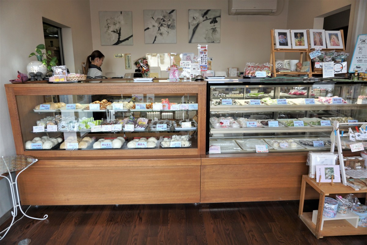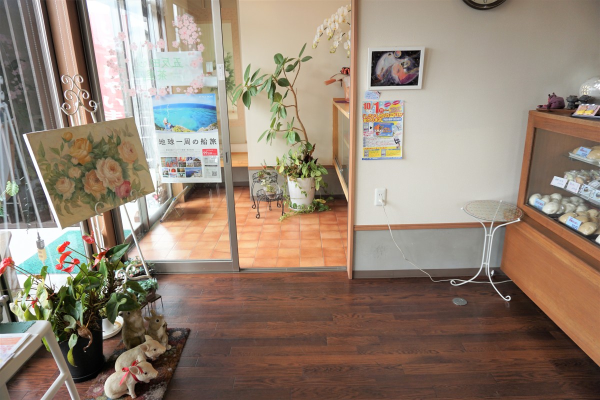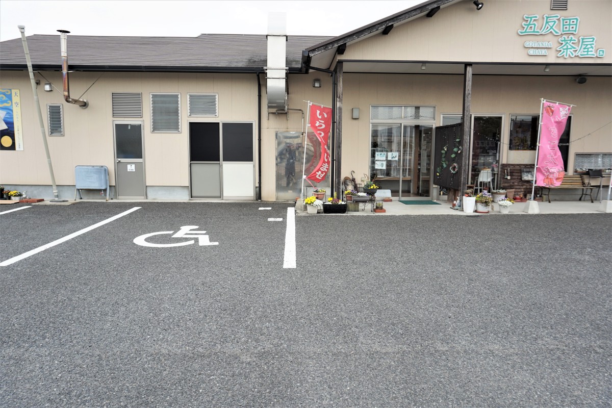 広い駐車場と店舗入り口前に身障者等用駐車場があります。イートインスペースもあり、購入した和菓子を楽しんでいただけます。トイレのスペースも比較的広いつくりになっています。