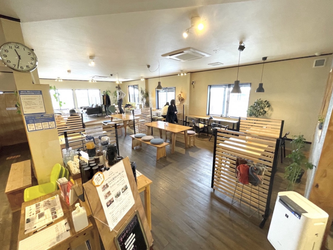 ・カフェコーナーのソファスペースは2段上がる段差あり