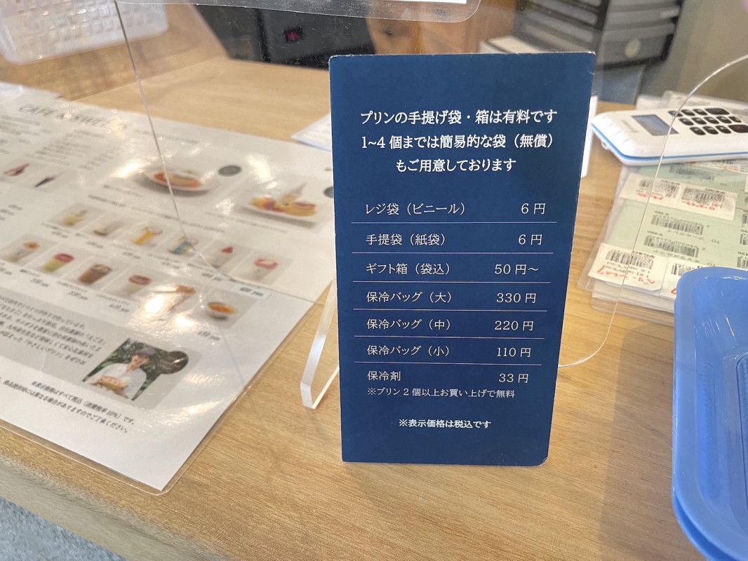 プリンはカフェ内でもいただけますので、その旨お伝えください。