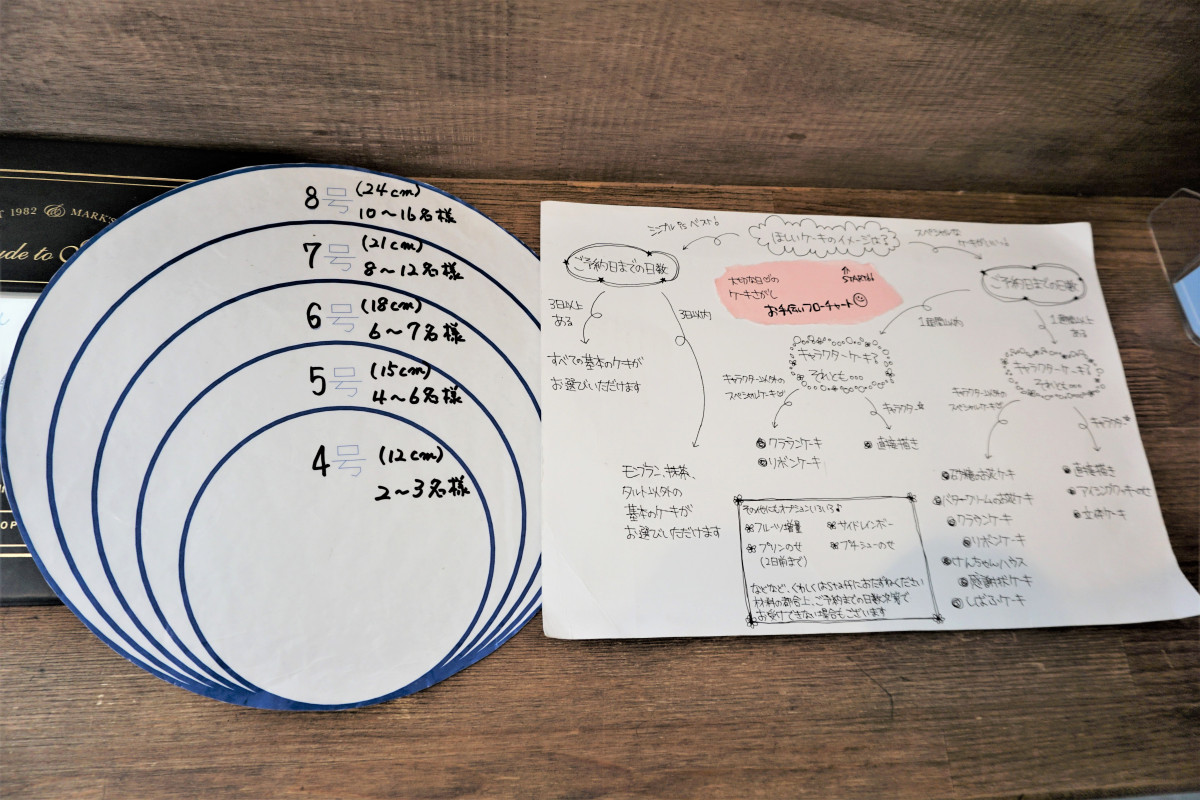 ホールケーキのご注文のイメージカタログ、サイズカタログ、フローチャートあります。