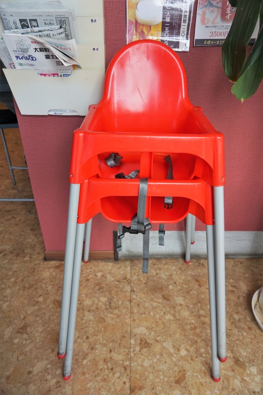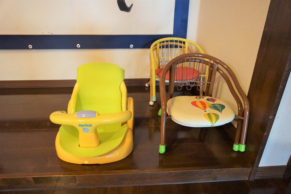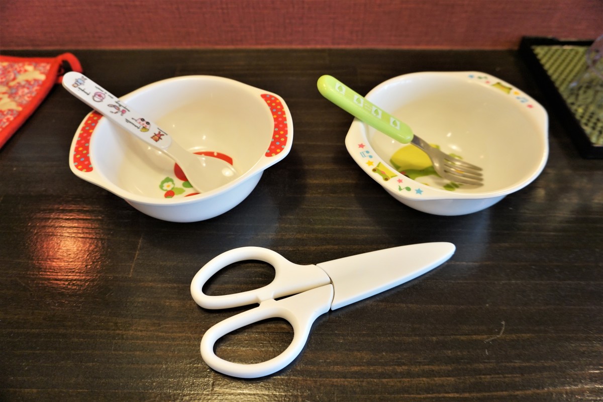 お子さま用のお椀、スプーン、お子さま用いす、麺類を切るハサミの貸し出しあり