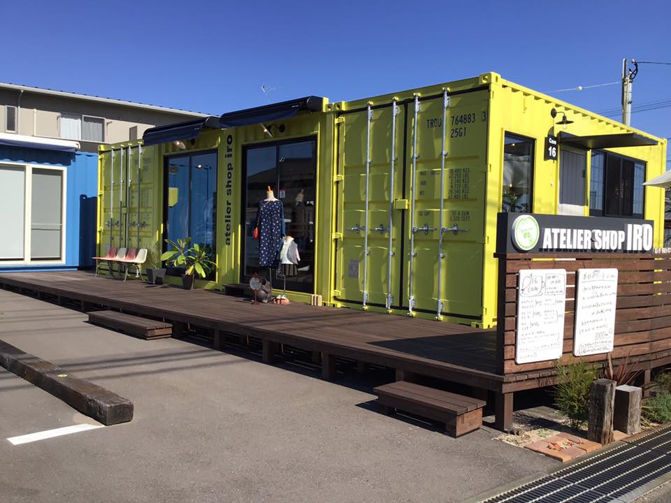 黄色と青のコンテナが目立つアトリエショップ兼カフェです。個性あふれるハンドメイド作品たちが並ぶ「アトリエショップ iro」では、お母さん達自身の経験から、「本当に欲しい!」と思った物を作成し、販売しております。店舗内にはアトリエもあり、作家さんと作家さん、作家さんと手に取っていただくお客様、みんながつながれるアトリエ兼ショップです。それだけでなく、「Cafe16(イロ)」も営業しており、様々なお客様が毎日来店されていて、おいしいランチ、かわいい作品、人との出会いの場となっています。イベント、マルシェの開催や出店も行っています。情報はフェイスブックやインスタグラムでチェック、フォローしてくださいね。